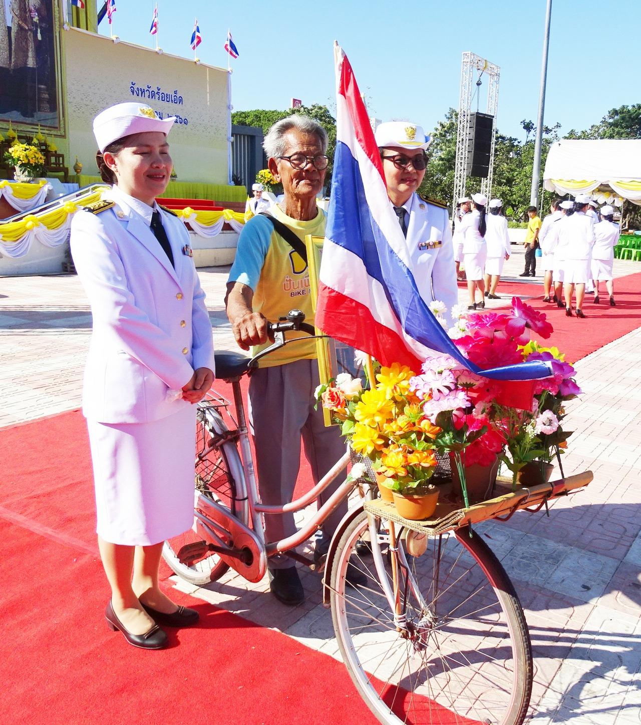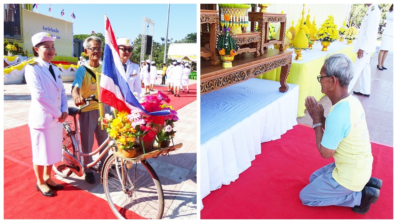 พ่อเฒ่าร้อยเอ็ดวัย 74 ปี ปั่นจักรยานสองล้อมาไกล 45 กม.เพื่อถวายบังคมพระบรมฉายาลักษณ์ ในหลวง ร.9 ทำติดต่อกันมา 12 ปี ด้วยความจงรักภักดีและสำนึกในพระมหากรุณาธิคุณ ลั่นจะทำจนกว่าชีวิตจะหาไม่...