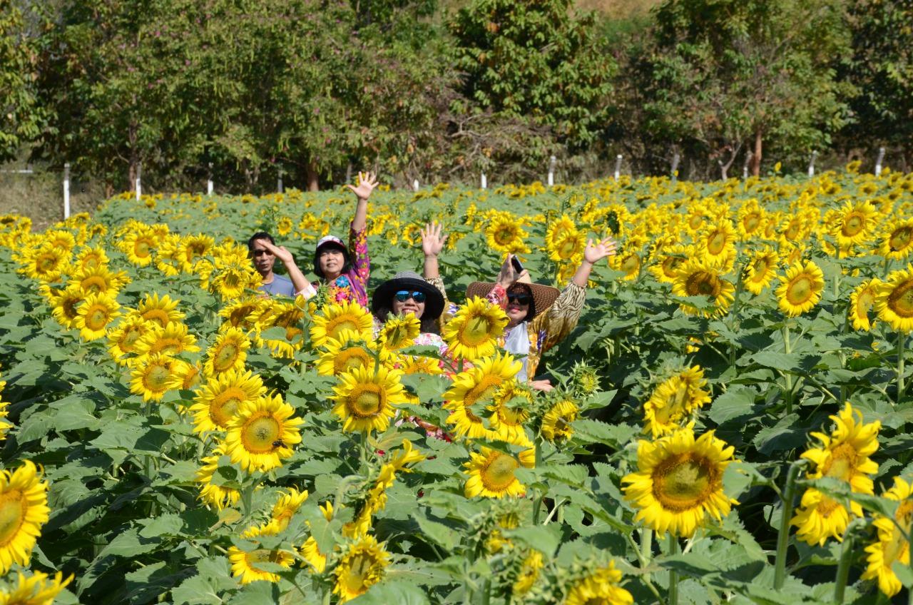 ทุ่งดอกทานตะวันยักษ์ เส้นผ่าศูนย์กลางดอกกว้าง 30-40 ซม. บานสะพรั่งรับลมหนาว ผลงานวิจัยของมรภ.โคราช เปิดให้นักท่องเที่ยวเข้าชมฟรี 1 เดือนเต็ม ภายในสวนเกษตร 100 ไร่...