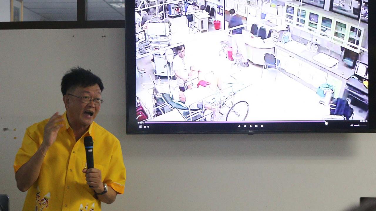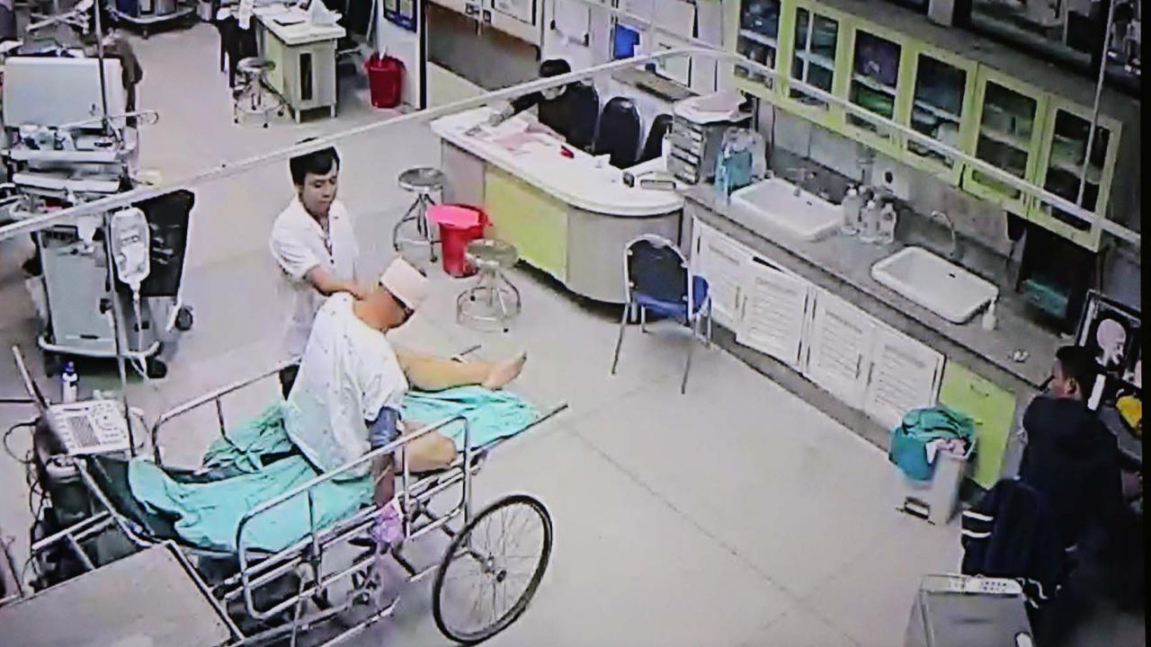 ต่อมาได้มีการเปิดคลิปช่วงที่ญาติสงสัยว่าผู้ป่วยถูกทำร้าย ซึ่งเป็นคลิปหลังจากพลัดตกเตียงและมีการพันแผลที่คิ้วของผู้ป่วย ในคลิปปรากฏภาพผู้ป่วยนอนบนเตียง มือข้างขวาถูกมัดกับขอบเตียงผู้ป่วย ส่วนมือข้างซ้ายผ้าที่มัดมือผู้ป่วยหลุดออก และผู้ป่วยในลุกนั่ง ซึ่งนั่งอยู่ช่วงใกล้ปลายเตียง ไม่นานก็มีบุรุษพยาบาลเดินเข้ามา พร้อมยกมือขวาขึ้นมาที่หน้าผู้ป่วย จังหวะนี้ในคลิปจะเห็นว่า ใบหน้าผู้ป่วยสะบัดไปทางขวา และถูกผลักให้นอนลง และบุรุษพยาบาลก็มัดมือข้างซ้ายของผู้ป่วยและพูดจาชี้หน้าผู้ป่วย ซึ่งในคลิปผู้ป่วยไม่มีอาการขัดขืนหรือตอบโต้แต่อย่างใด แต่เมื่อญาติๆเห็นคลิปต่างก็ไม่พอจึงกิริยาของบุรุษพยาบาล และยังเชื่อว่าบุรุษพยาบาลทำร้ายร่างกายผู้ป่วย และเรียกร้องให้ผู้อำนวยการโรงพยาบาลศูนย์ขอนแก่น เอาผิดกับบุรุษพยาบาลรายดังกล่าว เพราะเห็นว่าไม่เหมาะสมที่จะทำงานบริการและดูแลผู้ป่วย