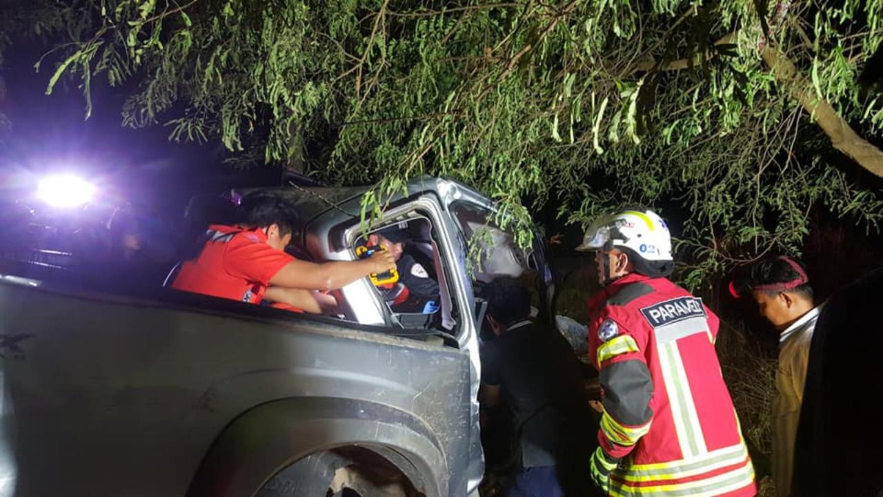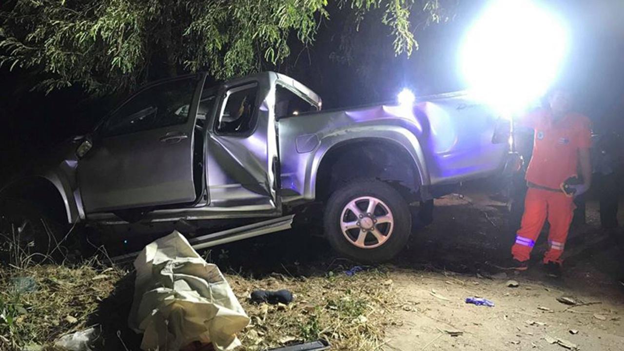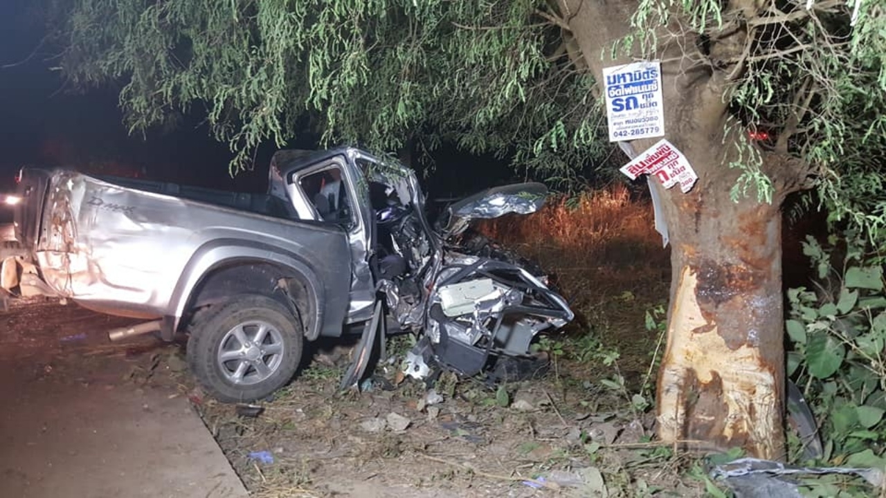 หนุ่มโสดอุดรฯ ซิ่งปิกอัพชนต้นไม้ข้างทาง ถูกอัดก๊อบปี้ดับคาที่ คาดหลับใน จนท.ต้องนำเหล็กตัดถ่างนำร่างผู้เสียชีวิตออกมา