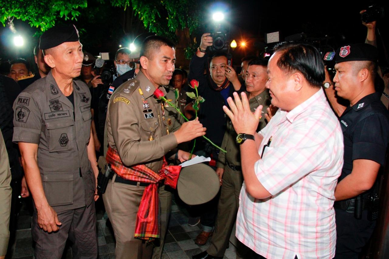 เมื่อเวลา 20.00 น. คืนวันที่ 8 ม.ค.61 ที่ผ่านมา ที่หอประชุมชัยจินดา ตำรวจภูธรจังหวัดบุรีรัมย์ ต.ในเมือง อ.เมือง จ.บุรีรัมย์ พล.ต.ท.สุรเชษฐ์ หักพาล ผบช.สำนักงานตรวจคนเข้าเมือง, พล.ต.ท.พูลทรัพย์ ประเสริฐศักดิ์ ผบช.ภ.3, พล.ต.ต.จิตรจรูญ ศรีวนิชย์ รอง ผบช.ภ.3, พล.ต.ต.พนัญชัย ชื่อนใจธรรม ผบก.สส.สตม., พล.ต.ต.อาชยน ไกรทอง ผบก.ตม.3 สตม.พล.ต.ต.ปภัสเดช เกตุพันธ์ ผบก.สส.ภ.3, พล.ต.ต.วีรพล เจริญศิริ ผบก.ภ.จว.บุรีรัมย์ นายวิทยาพร จันทวาส นักสืบสวน ชำนาญการพิเศษ สำนักงาน ปปง. นายกฤษฎา แก้วสองเมือง รองผู้ว่าฯบุรีรัมย์ พร้อมด้วยเจ้าหน้าที่ตำรวจ ศูนย์ปราบปรามอาชญากรรมทางเทคโนโลยีสารสนเทศ สำนักงานตำรวจแห่งชาติ (ศปอส.ตร.) ศูนย์ปฏิบัติการป้องกันปราบปรามการฉ้อโกงทรัพย์สินของประชาชน สำนักงานตำรวจแห่งชาติ (ศปฉช.ตร.) และหน่วยทหารในพื้นที่ แถลงข่าวผลการดำเนินการภายใต้ยุทธการ “ขุดรากถอนโคนอาชญากรรม ทำบ้านเมืองน่าอยู่” ครั้งที่ 24 ในพื้นที่ตำรวจภูธรภาค 3 และภาค 4 โดยมีประชาชนจากทั้งเขต อ.เมืองบุรีรัมย์ อ.นางรอง และ อ.โนนดินแดง กว่า 10 คน เดินทางมามอบดอกกุหลาบ และผูกผ้าขาวม้าผูกเอวให้กับ พล.ต.ท.สุรเชษฐ์ เพื่อให้กำลังใจการทำงาน ที่สามารถช่วยเหลือชาวบ้านในครั้งนี้