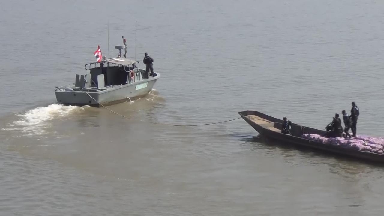 ขณะเดียวกันเจ้าหน้าที่ชุดที่ 2 ลงพื้นที่บ้านนาโปใหญ่ ดักซุ่มบริเวณริมฝั่งแม่น้ำโขงตามที่ได้รับแจ้ง พบเรือเหล็กขนาดใหญ่วิ่งมาจากประเทศเพื่อนบ้าน แล้วเข้ามาจอดที่ริมฝั่งแม่น้ำโขง เจ้าหน้าที่จึงได้ออกไปแสดงตัว เพื่อขอตรวจค้น คนขับเรือดังกล่าวได้ปลดล็อกเครื่องยนต์เรือให้จมไปในน้ำโขง แล้ววิ่งหลบหนีไปได้ ตรวจสอบภายในเรือลักษณะใช้ผ้าสีดำคลุมปิดอย่างมิดชิด พบกระเทียมหัวแห้ง จำนวน 250 กระสอบๆ 20 กก. น้ำหนัก 5,000 กก. ตรวจสอบบริเวณใกล้เคียงไม่มีผู้ใดมาแสดงตนเป็นเจ้าของ จากนั้น จนท.ได้ทำการตรวจยึดกระเทียมแห้งหัวใหญ่ พร้อมของกลางทั้ง 2 รายการ ส่งด่านศุลกากรมุกดาหาร เพื่อดำเนินคดีตามกฎหมายต่อไป