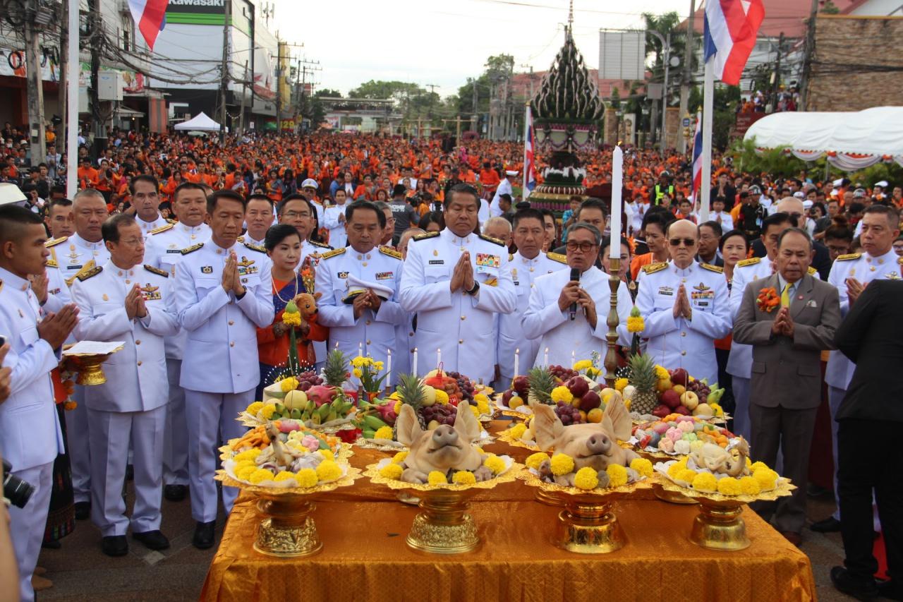 "องคมนตรี" เป็นประธานพิธีบายศรีสู่ขวัญบ้านสู่ขวัญเมือง ขณะที่ "ตุ๊กกี้" พร้อมหญิงครึ่งแสนร่วมรำบวงสรวงถวาย "กรมหลวงประจักษ์ศิลปาคม" ฉลองก่อตั้งเมืองอุดรธานี 126 ปี...