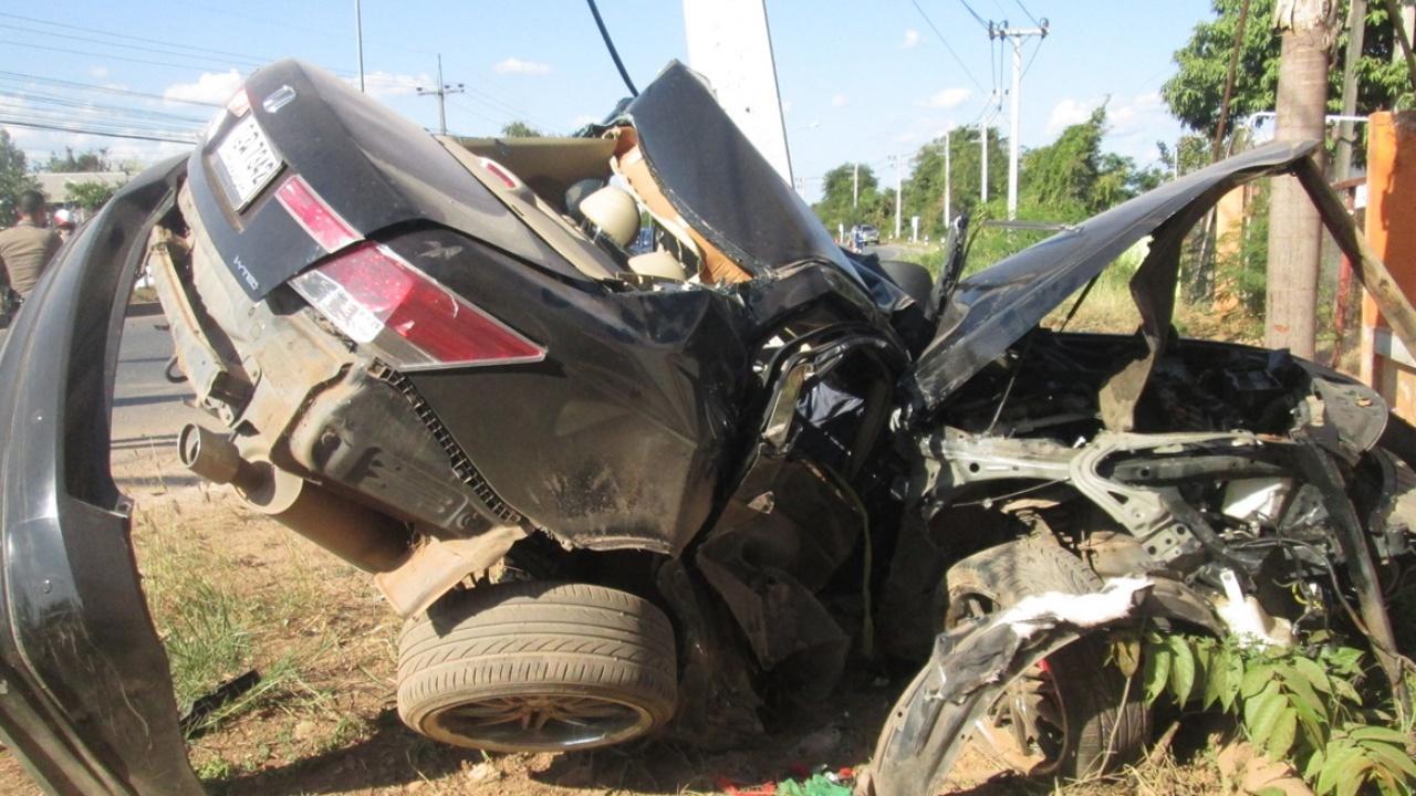 ชนสยองเกือบขาดสองท่อน! หนุ่มทำงานบ่อขุดเจาะน้ำมันซิ่งเก๋งแอคคอร์ดแหกโค้งจุดเสี่ยงเมืองนครพนม ปะทะเสาไฟฟ้าแรงสูงขนาดใหญ่ อย่างจัง ดับคาซากพร้อมเพื่อนที่นั่งมาด้วย รวม 2 ศพ คาดไม่ชำนาญเส้นทาง
