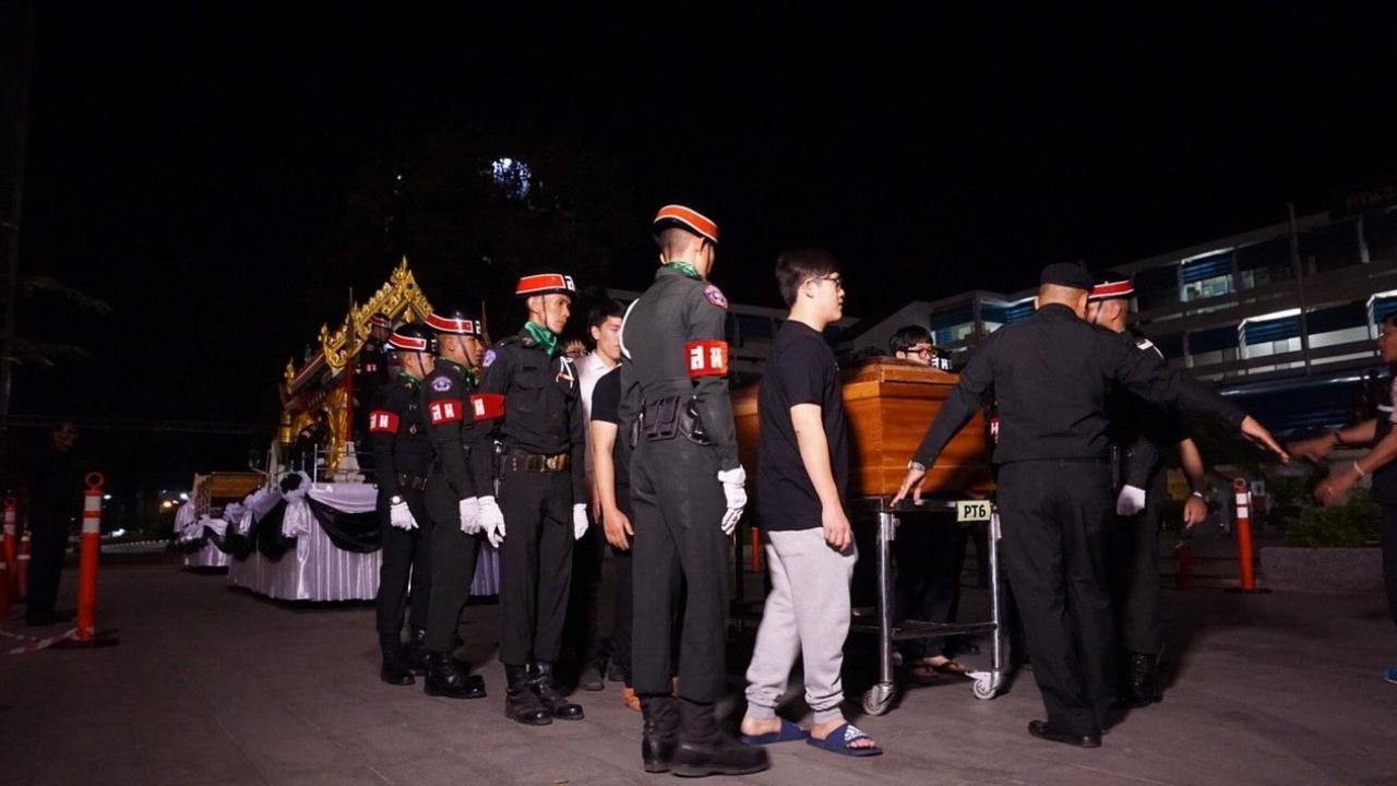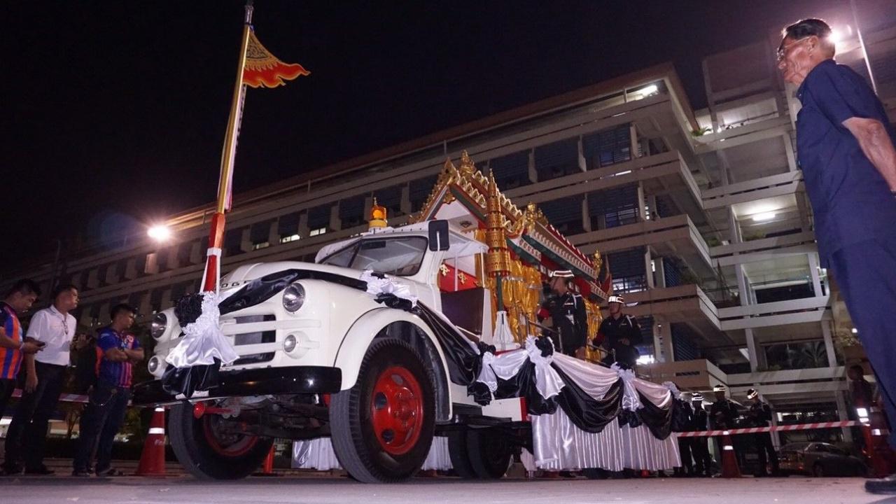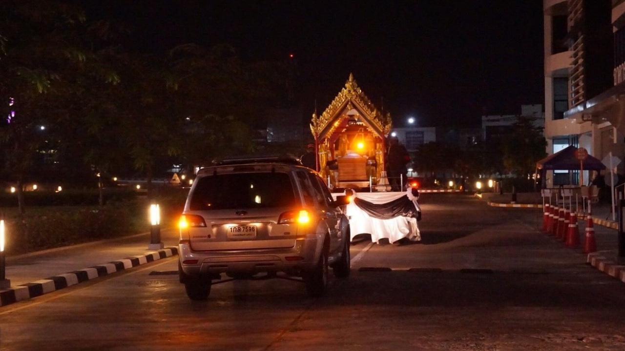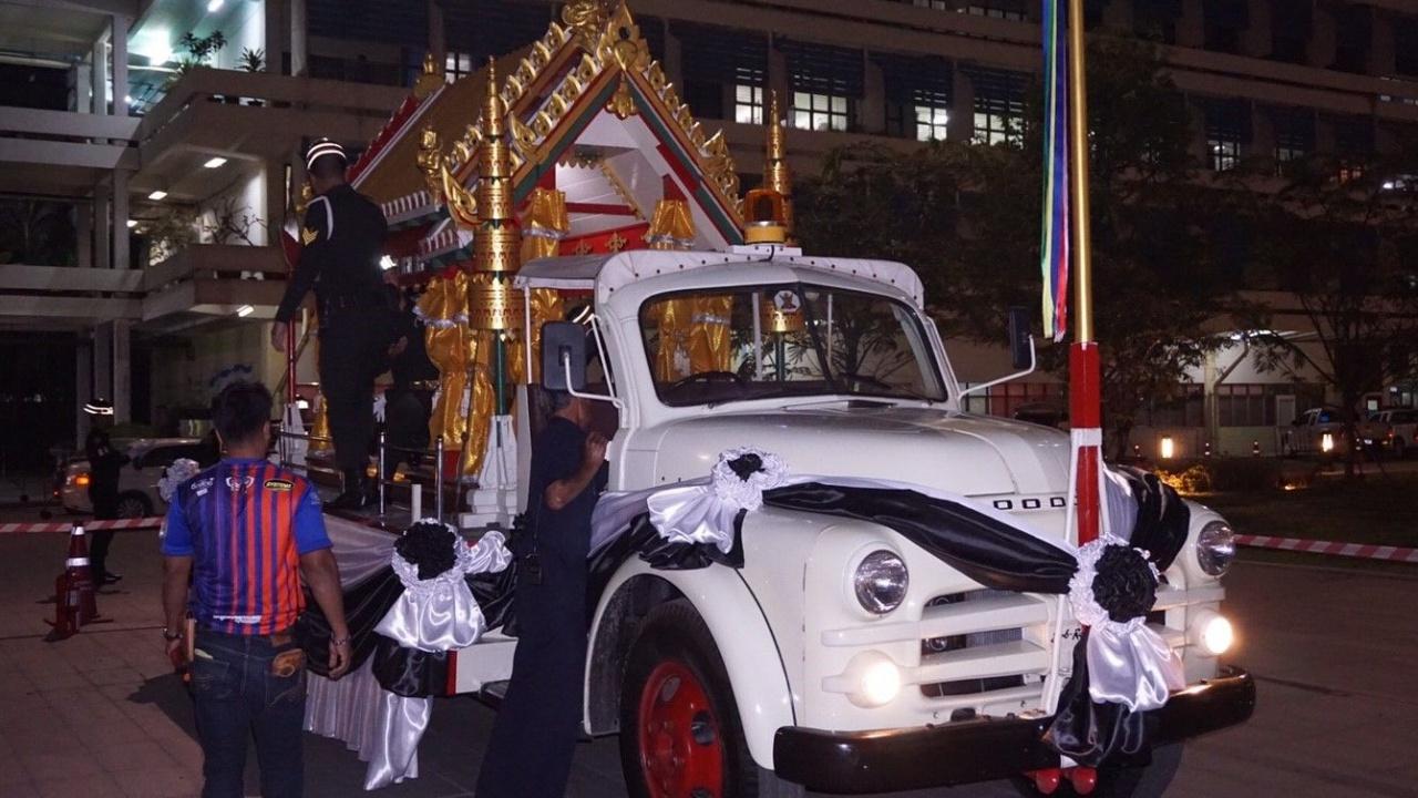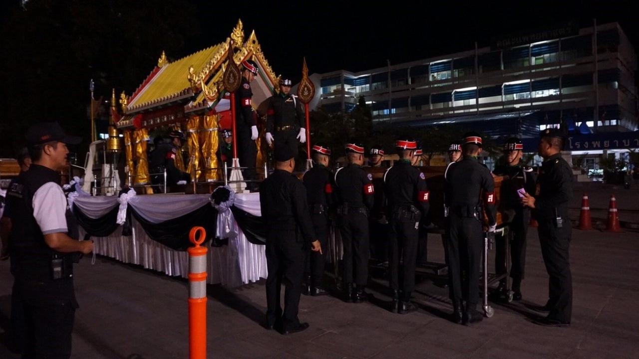 โดยมีกำลังทหารจากมณฑลทหารบกที่ 23 จำนวน 8 นาย ยกหีบศพสำรองออกจากห้องเก็บสรีรสังขาร ลงมาที่ชั้น 7 จากนั้นจะยกหีบวางใส่รถเข็น และนักศึกษาได้ช่วยกันเข็นไปตามเส้นทางที่ มหาวิทยาลัยขอนแก่น กำหนดจนถึงลิฟต์หมายเลข 1 เพื่อลงมายังชั้น 1
