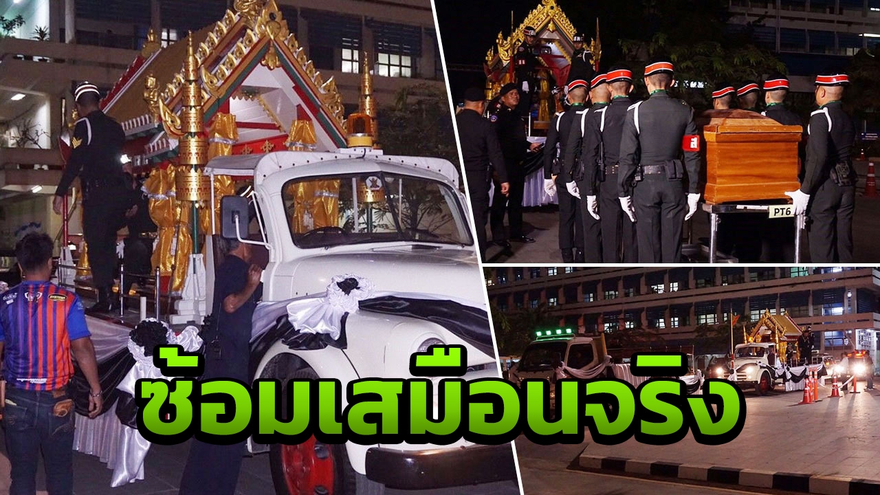 ซ้อมเสมือนจริง เคลื่อนสรีรสังขาร หลวงพ่อคูณ พรุ่งนี้แล้ว ใช้กำลังทหารรวม 12 นาย ในขั้นตอนยกหีบศพจากห้องเก็บสรีระชั้น 7 ก่อนนำขึ้นรถโบราณเปิดประทุน หมายเลขทะเบียน 4น-1777