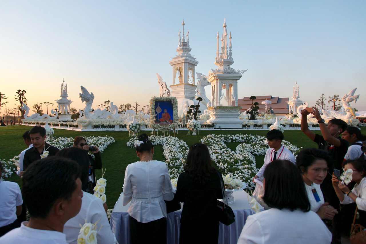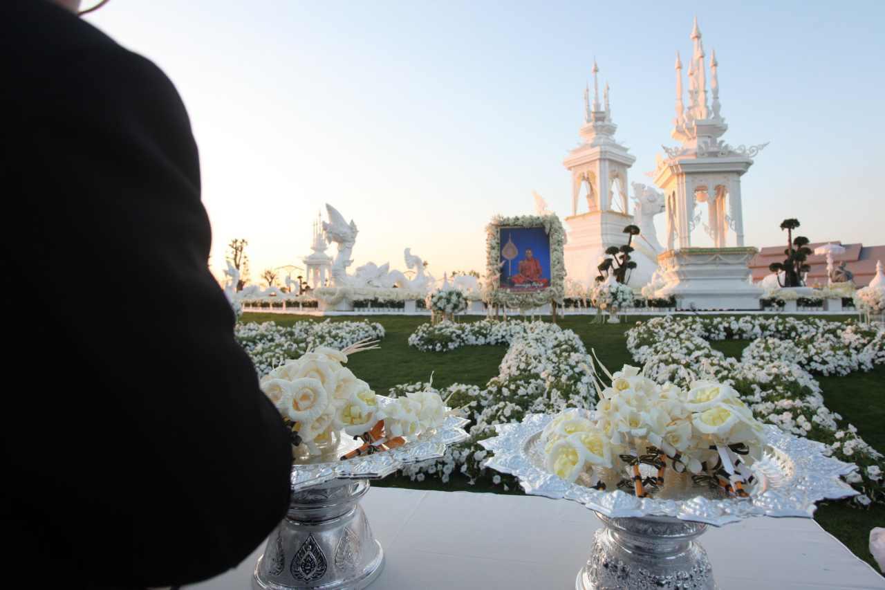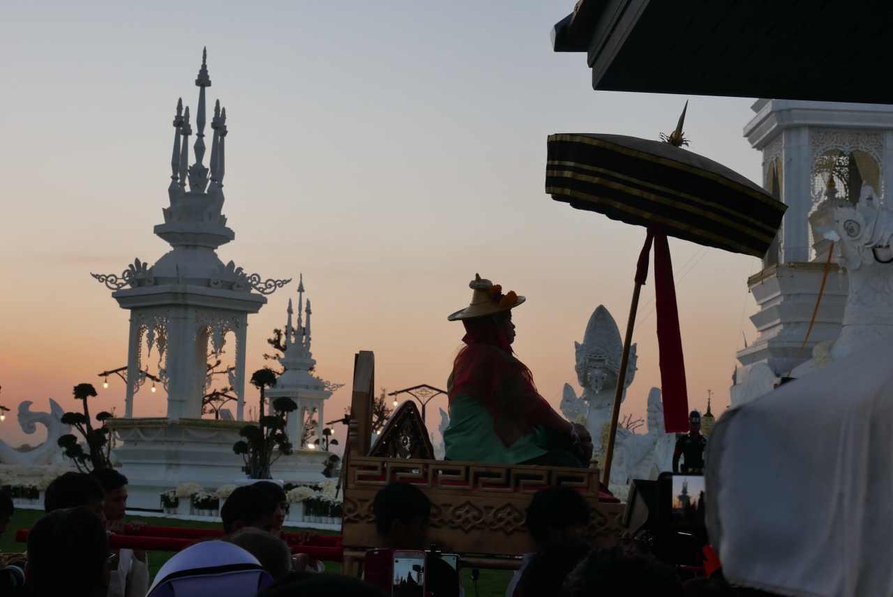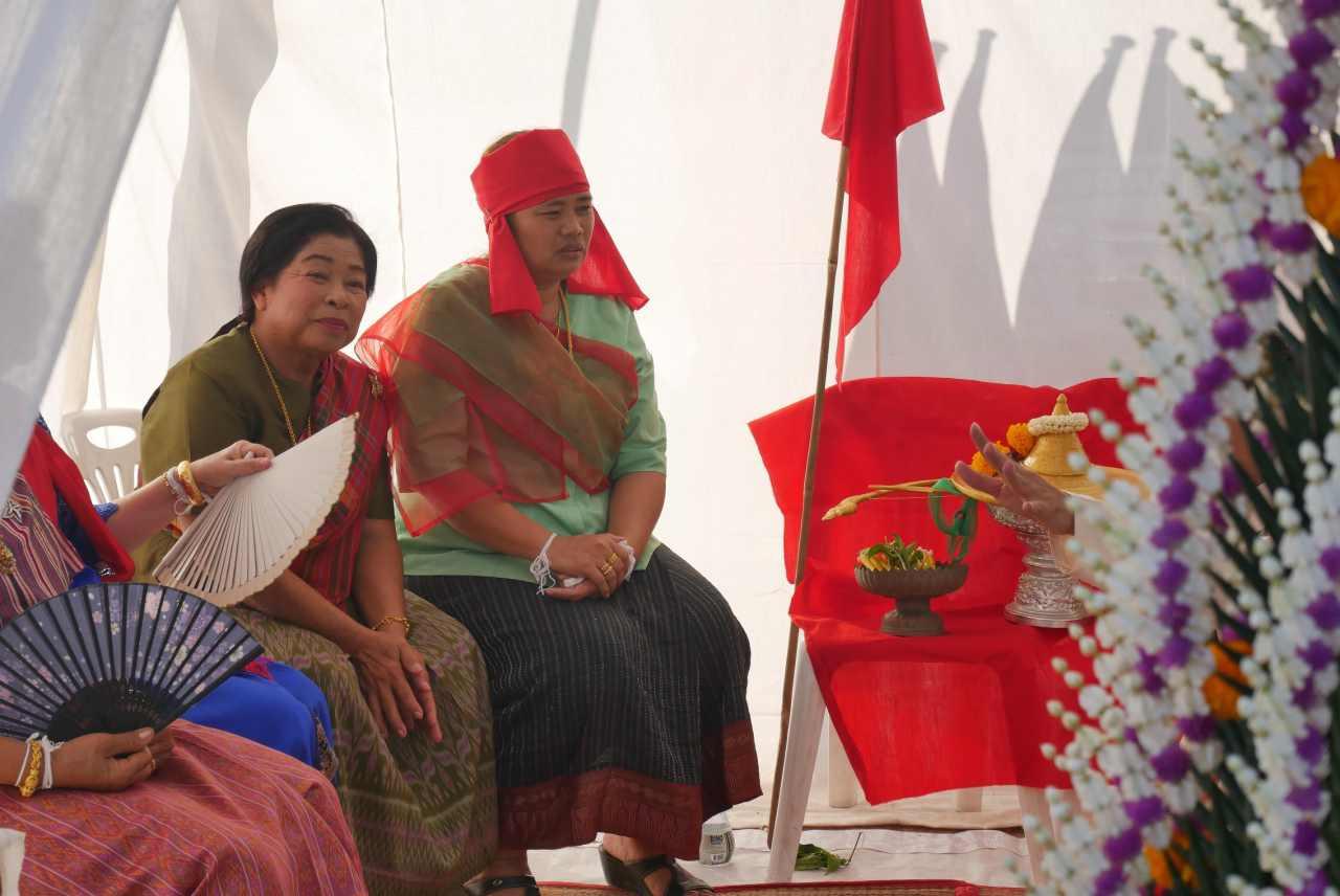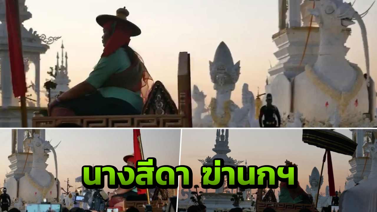 ก่อนที่ น.ส.เมทินี หวานอารมณ์ อายุ 45 ปี ชาว จ.อุลราชธานี ทายาทนางสีดารุ่นที่ 6 ได้นั่งมาบนเสลี่ยงคานหาม พร้อมทหารเอก ไพร่พล ทำพิธีบวงสรวง แล้วมุ่งหน้าไปฌาปนสถานชั่วคราว วัดหนองแวงพระอารามหลวง จนถึงเกาะกลางน้ำ ที่ตั้งนกหัสดีลิงค์เทินบุษบก