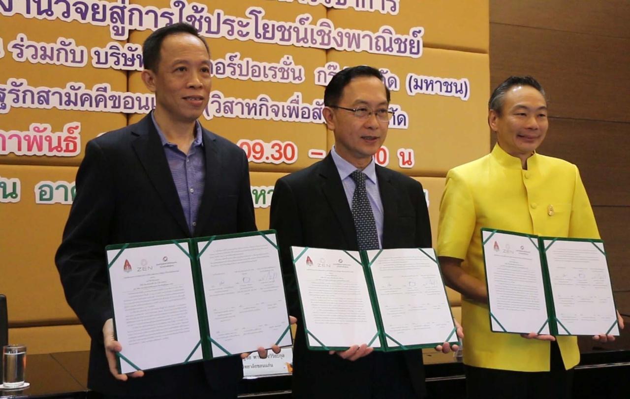 เมื่อวันที่ 27 ก.พ.2562 ที่ห้องประชุมชั้น 2 สำนักงานอธิการบดีมหาวิทยาลัยขอนแก่น หรือ มข. รศ.นพ.ชาญชัย พานทองวิริยะกุล รักษาการอธิการบดีมหาวิทยาลัยขอนแก่น หรือ มข. เป็นประธานในการลงนามในบันทึกข้อตกลงในการพัฒนาต่อยอดงานวิจัยสู่การใช้ประโยชน์เชิงพาณิชย์ ระหว่าง รศ.ดร.มนต์ชัย ดวงจินดา ผู้อำนวยการศูนย์เครือข่ายวิจัยและพัฒนาด้านการปรับปรุงพันธุ์สัตว์ (ไก่พื้นเมือง) กับ นายชาติชาย โฆษะวิสุทธิ์ ประธานกรรมการ บริษัท ประชารัฐรักสามัคคีขอนแก่น (วิสาหกิจเพื่อสังคม) จำกัด และ นายบุญยง ตันสกุล ประธานเจ้าหน้าที่บริหาร บริษัท เซ็น คอร์ปอเรชั่น จำกัด (มหาชน) ในการนำไก่พื้นเมืองพันธุ์ใหม่ที่มีกรดยูริกต่ำไปใช้ประโยชน์เชิงพาณิชย์ ท่ามกลางความสนใจนากนักวิชาการ ,เกษตรกร รวมไปถึงผู้ที่ชื่นชอบรับประทานไก่ที่มีกรดยูริคต่ำ ร่วมเป็นสักขีพยานและร่วมแสดงความยินดีเป็นจำนวนมาก