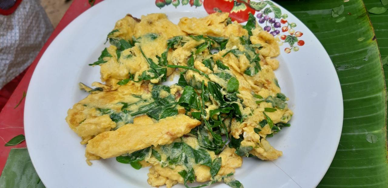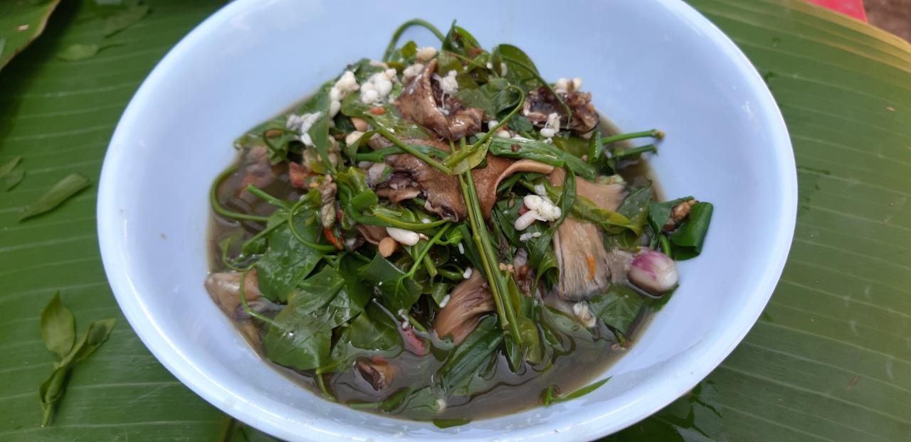 จากนั้นสมาชิกกลุ่มปลูกผักหวานป่า ได้โชว์เมนูเด็ด แกงผักหวานใส่ไข่มดแดง เริ่มแรกนำน้ำใบย่านางมาเทลงในหม้อ พร้อมกับตำพริก หอม ตะไคร้ ใส่ลงไปในหม้อ ปรุงด้วยน้ำปลาร้า เมื่อเดือดได้ที่ให้ใส่ปลาแห้ง ไข่มดแดง ตามด้วยเห็ดกระด้าง รอจนเดือดก็ใส่ยอดผักหวาน ต้นหอมและใบแมงลัก ปิดฝาหม้อรอให้เดือด เมื่อชิมได้รสชาติตามที่ต้องการ ก็ตักใส่ถ้วย รับประทานกับข้าวสวยร้อนๆ อร่อยเอาอะไรมาแลกก็ไม่ยอม