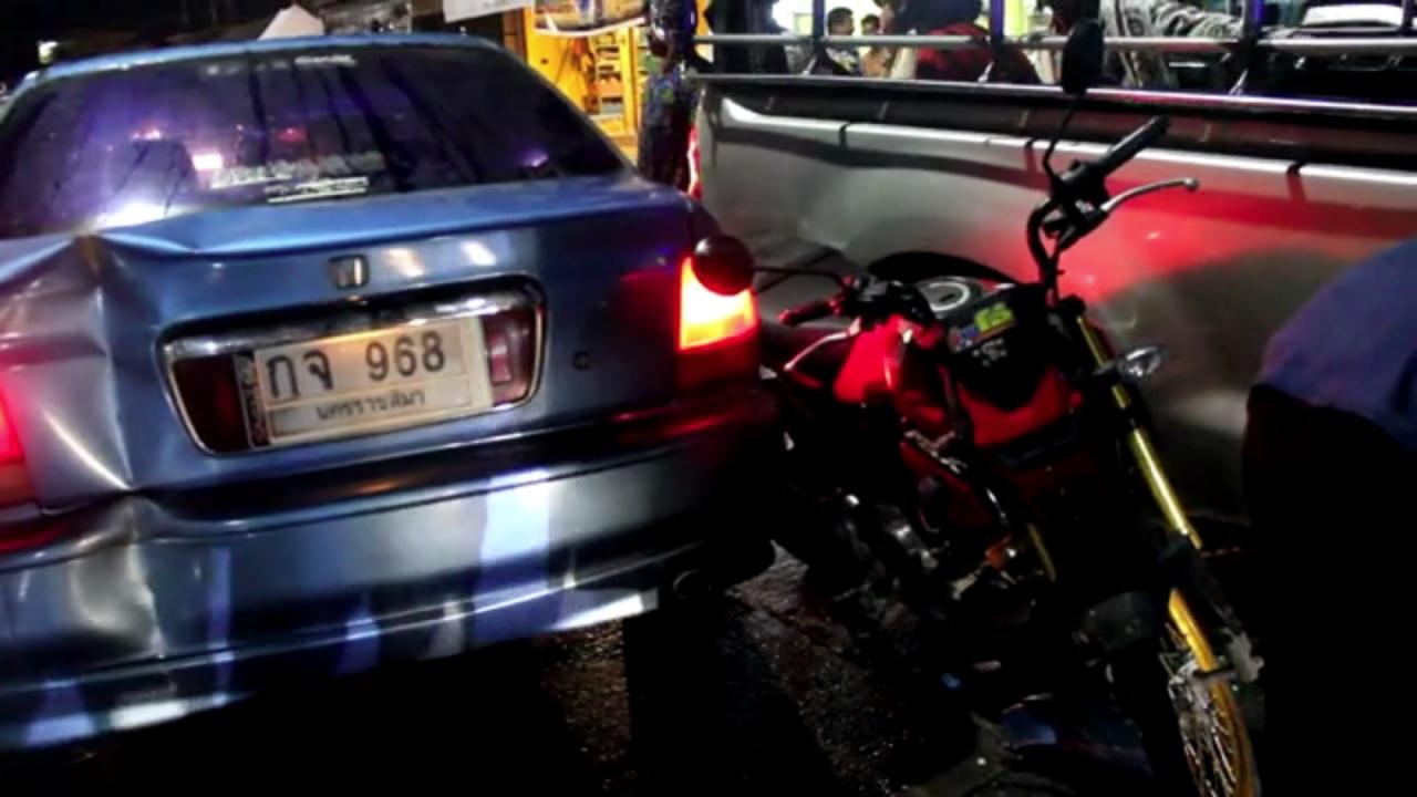 เกิดเหตุรถเก๋งพุ่งข้ามเลนถนนในจ.นครราชสีมา ไปชนสาวทอมซึ่งกำลังเล่นน้ำสงกรานต์จนได้รับบาดเจ็บ ก่อนจะชนรถจักรยานยนต์ไปอัดกับรถกระบะอีกคัน โดยคนขับเก๋งมีสภาพคล้ายคนเมาสุรา...