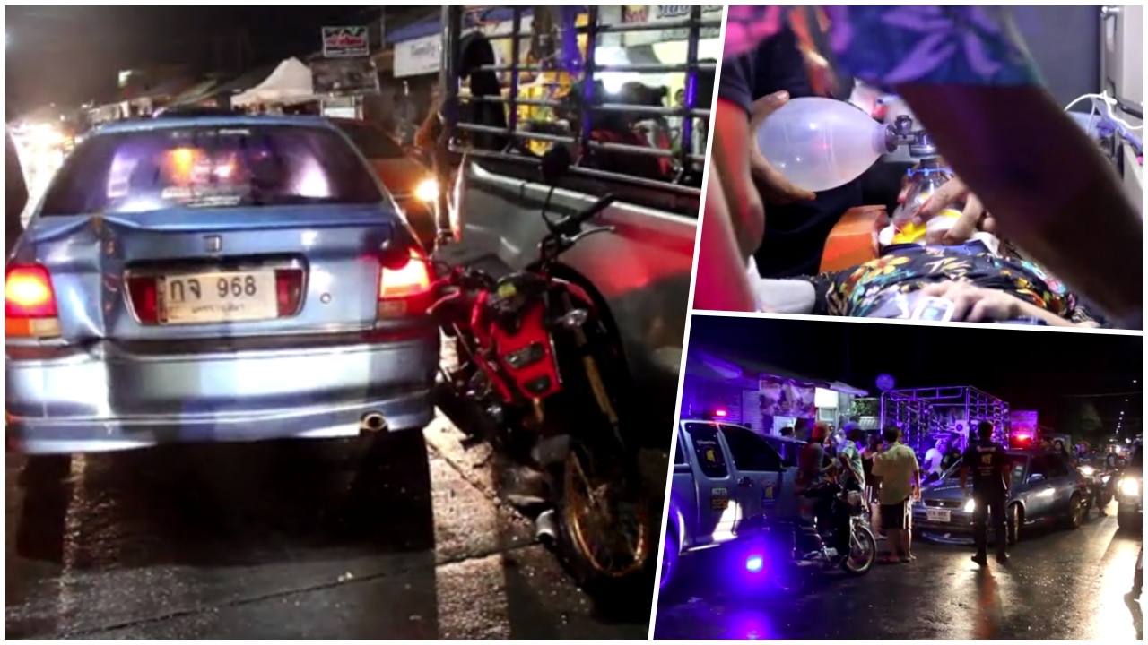 ด้านนายนายสุเนตร แซ่แต้ คนขับรถกระบะ วีโก้ เล่าว่า ขณะเกิดเหตุตนขับรถมาช้าๆเนื่องจากปริมาณรถเยอะเพราะคนเล่นน้ำสงกรานต์มาก ขณะมาถึงที่เกิดเหตุมีรถเก๋งคันดังกล่าวขับมาด้วยความเร็วคล้ายกับมีอาการเมาก่อนจะข้ามเลนมาชนผู้บาดเจ็บขณะยืนเล่นน้ำอยู่จนกระเด็นมาตกที่หน้ารถของตนเอง