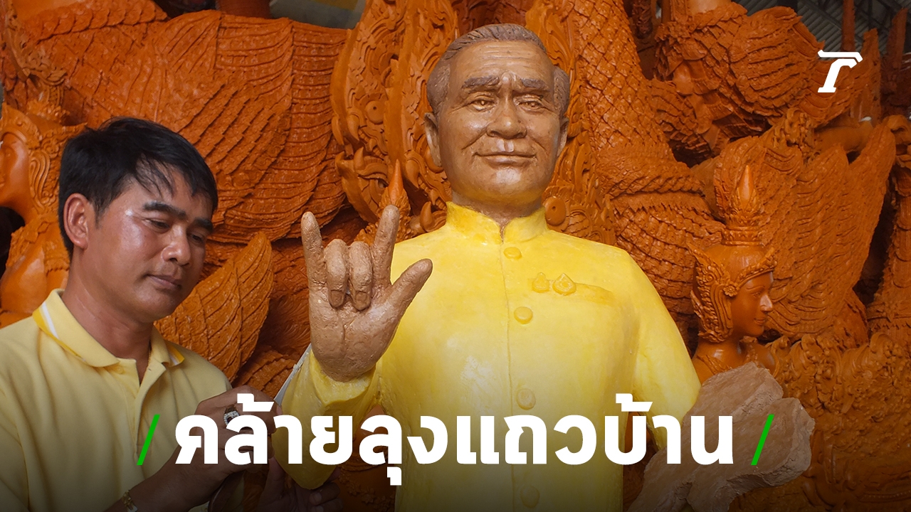 ช่างเทียนโคราชแกะสลักเทียนพรรษาเป็นหุ่น “คุณลุง 2019 รักนะประเทศไทย” ฮือฮาหน้าตาคล้าย “บิ๊กตู่” ทำมือไอเลิฟยู พร้อมกับถือแผนที่ประเทศไทย ส่งเสริมความรักชาติ ศาสนา พระมหากษัตริย์