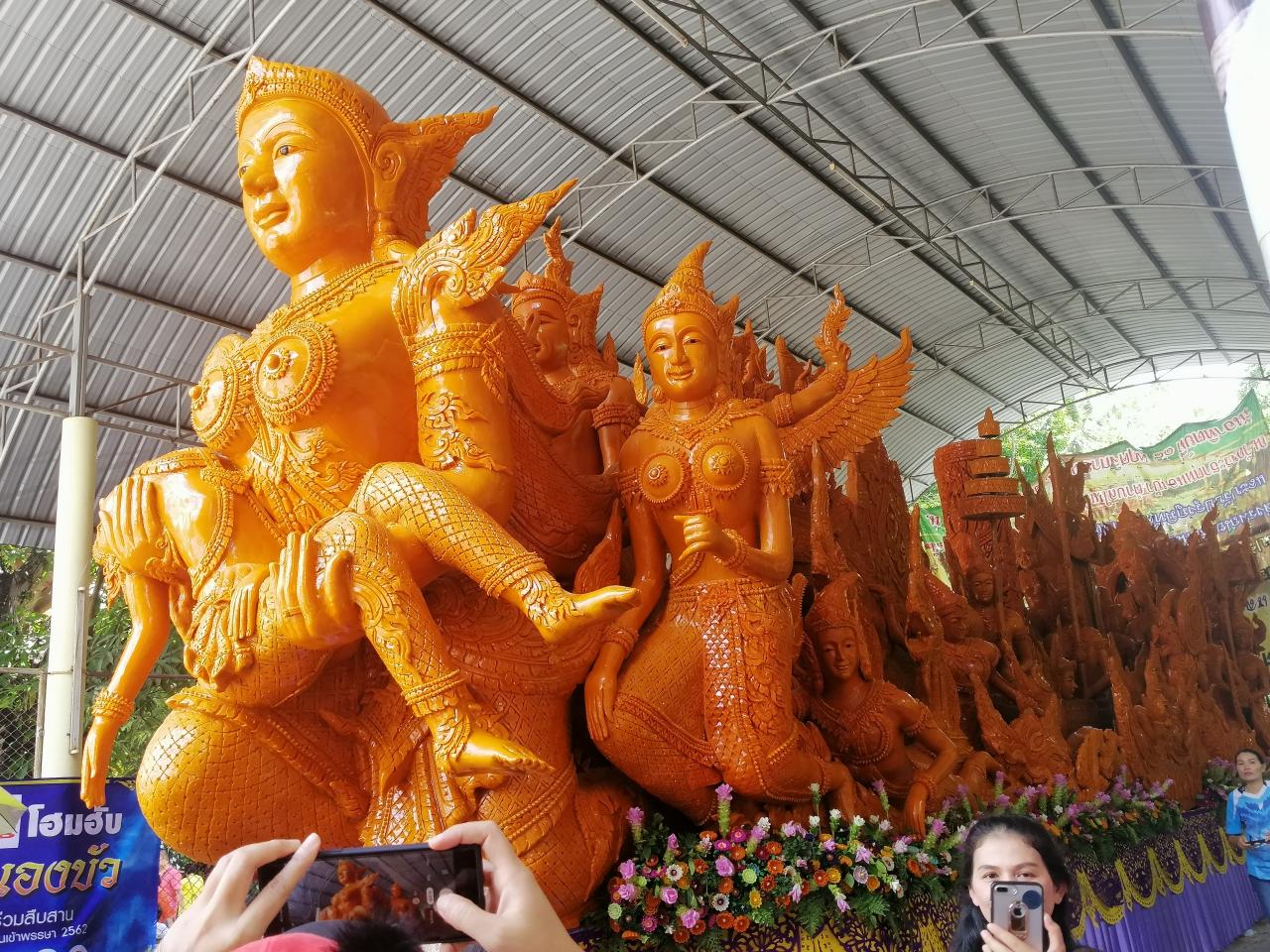 ทั้งนี้ นักท่องเที่ยวที่เข้ามาเที่ยวชมต้นเทียนภายในวัด ต่างไม่พลาดที่จะถ่ายรูปเก็บไว้เป็นที่ระลึก เพราะได้เข้าชมความงดงามของเทียนแกะสลักอย่างใกล้ชิด ซึ่งต้นเทียนวัดพระธาตุหนองบัว เคยได้รับรางวัลชนะเลิศในประเภทต้นเทียนแกะสลักขนาดกลาง ประจำปี 2561 ที่ผ่านมา และต้นเทียนดังกล่าวได้นำไปจัดแสดงโชว์ที่ศูนย์ การค้าไอคอนสยามกรุงเทพด้วย.