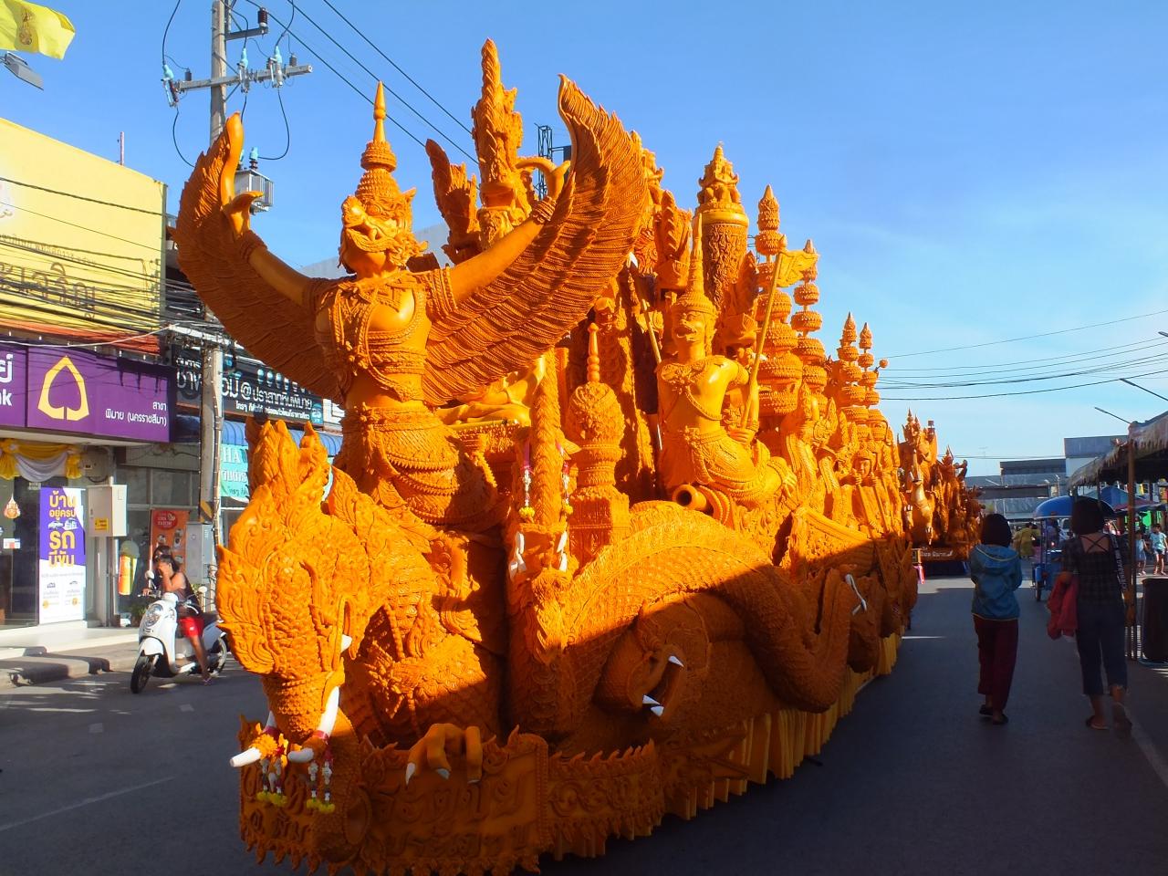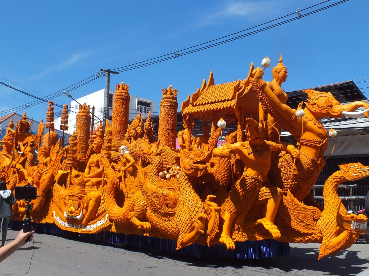 มีขบวนเทียนจากวัดต่างๆ ในเขตเทศบาลตำบลพิมาย มีขบวนต้นเทียนวัดเดิม เป็นขบวนเทียนตัวแทนของเทศบาล ไม่ได้เข้าประกวดในพิมาย ส่วนขบวนต้นเทียนที่เข้าประกวดแห่ไปรอบในเขตเทศบาล มี เทียนวัดใหม่ประตูชัย วัดเก่าประตูชัย วัดบูรพาพิมล วัดสระเพลง และขบวนเทียนของชุมชนในเขตเทศบาลตำบลพิมาย บรรยากาศเนืองแน่น 2 ฝั่งทางเป็นไปอย่างคึกคัก หลังจากแห่เสร็จในพิมายรถขบวนเทียนทุกขบวนเดินทางเข้าไปในจังหวัดนครราชสีมา.