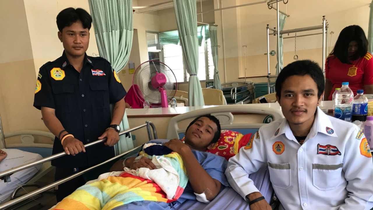 "เหตุการณ์ทั้งหมดเกิดขึ้นหลังจากเดินเที่ยวดูร้านค้าในงานแห่เทียนเข้าพรรษา เมื่อคอนเสิร์ตจบ ได้ยินเสียงวิทยุสื่อสาร ขอกำลังเข้าช่วยเหลือเหตุวัยรุ่นตีกันบริเวณหน้าร้าน เซเว่น อีเลฟเว่น จีงรีบเข้าไปช่วยเหลือ ปฐมพยาบาลและนำส่ง รพ.นางรอง แล้วจึงกลับบ้าน จนมาเกิดเหตุถูกทำร้ายร่างกายเช่นกัน"