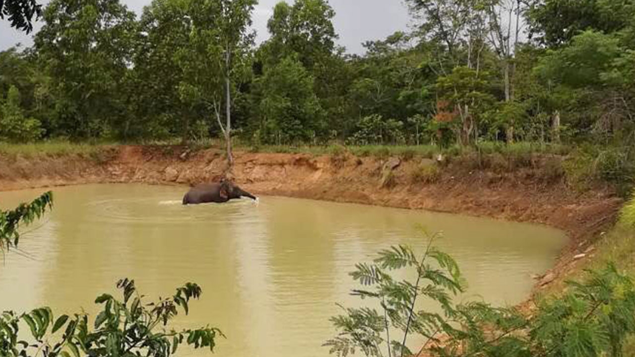 ช้างป่าลงกินน้ำและเดินเล่นอยู่ในสระน้ำหลัง ร.ร.บ้านหนองบอนฐานเจ้าป่า อ.โนนดินแดง จ.บุรีรัมย์ หลังเกิดภัยแล้ง ต้นไม้ในป่าแห้งตาย สัตว์ป่าต้องออกมาหาแหล่งน้ำ จากเดิมเคยออกหากิน ตอนกลางคืน เปลี่ยนมาเป็นช่วงกลางวัน ชาวบ้านห่วงทรัพย์สินเสียหาย.
