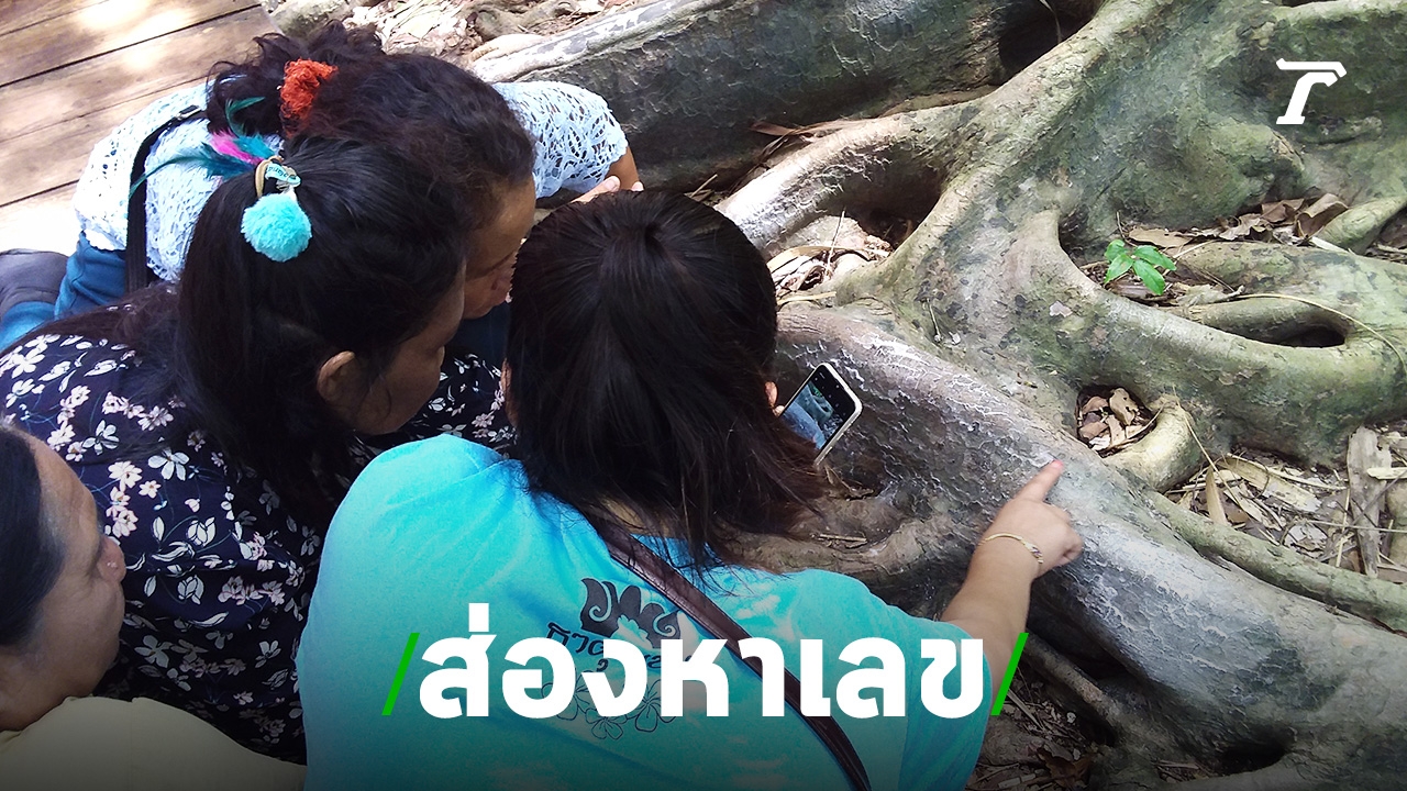ใกล้วันหวยออก นักเสี่ยงดวงคอหวยอุดรธานี วิ่งหา"เลขเด็ด"ให้ควั่ก แห่ใช้มือถือส่องตามรากมะเดื่อยักษ์แล้วยังไม่หนำใจ จับเต่ายักษ์ส่องบนหลังจนเจอเลขกลางหลัง 35, 53 ส่วนเลขมงคล 28, 82 ไม่มีเหลือแล้ว...(โค้งสุดท้ายหวย "เลขเด็ด" งวด 01/08/62)