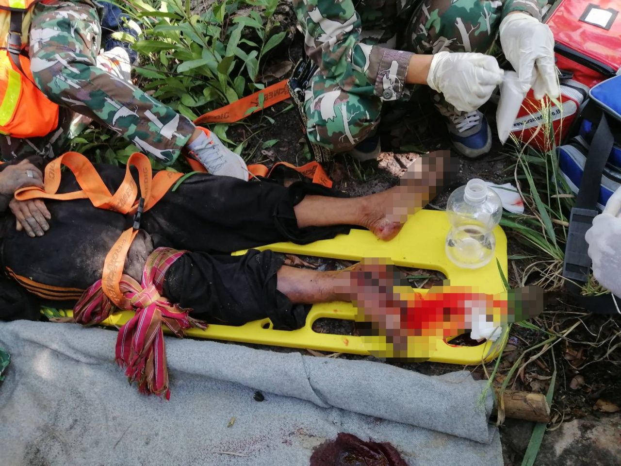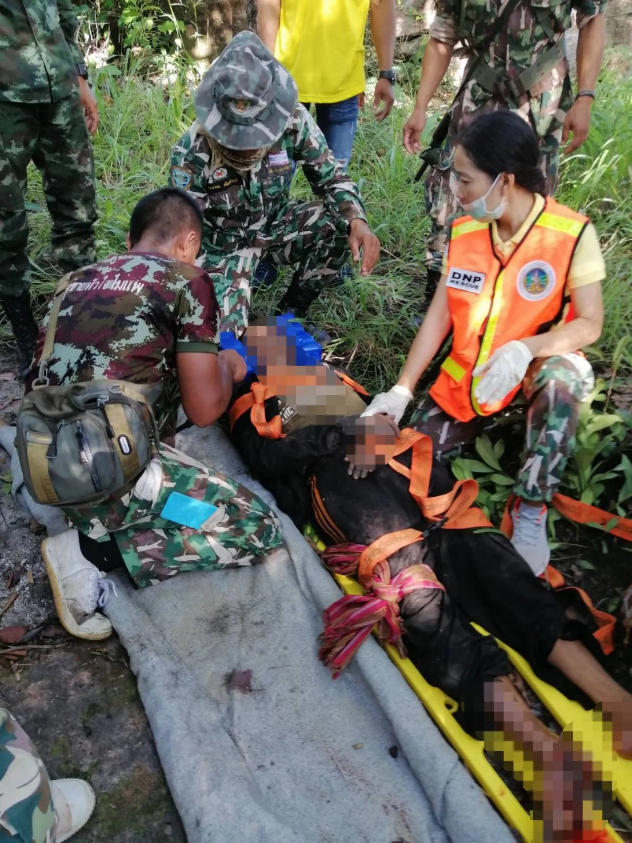 เมื่อขับรถเข้าป่าไปถึงเขตอุทยานแห่งชาติเขาพระวิหาร พบชาวบ้านช่วยผู้บาดเจ็บออกจากป่ามาขึ้นรถบนถนนแล้ว ทราบชื่อ คือ นายไพรวัลย์ ทวีสาร อายุ 44 ปี บ้านภูมิซรอล หมู่ที่ 12 ต.เสาธงชัย อ.กันทรลักษ์ บาดเจ็บที่ฝ่าเท้าขวาแตก เจ้าหน้าที่รีบให้การปฐมพยาบาลก่อนนำส่งโรงพยาบาลกันทรลักษ์
