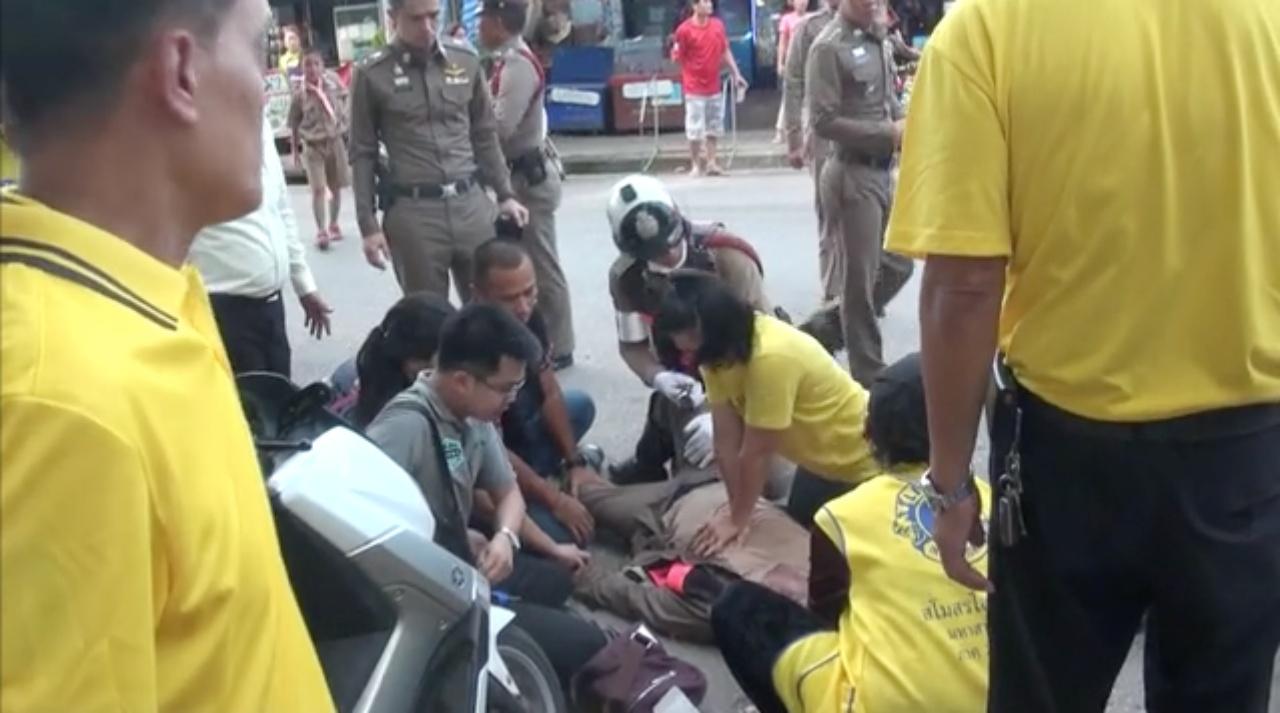 ตร.จราจร ที่อำนวยความสะดวกในงาน 154 ปี มหาสารคาม เกิดช็อกหมดสติ ล้มลงกลางถนน พยาบาลห้องฉุกเฉิน รพ.มหาสารคามที่มาร่วมงาน รุดเข้าปั๊มหัวใจ ช่วยจนฟื้น ก่อนให้โทร 1669 เรียกรถฉุกเฉินมารับไปรพ.