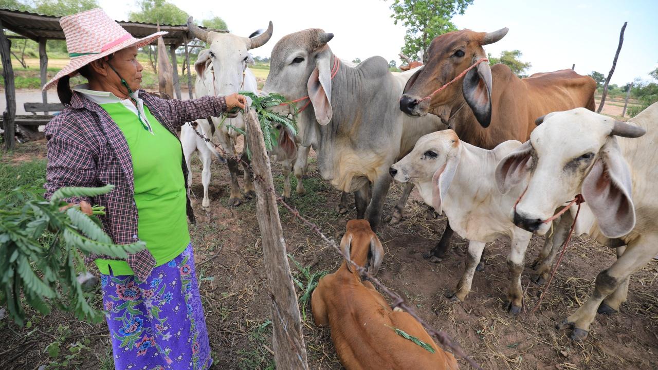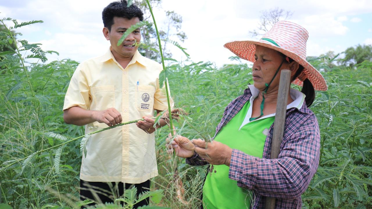 จากเดิมที่เป็นดินเค็มจัดจะปลูกพืชได้ครั้งเดียวต่อปี แล้วก็ผลผลิตที่ได้ อย่างเช่น ผลิตข้าวจะประมาณ 100 อย่างมากก็ 200 กิโลกรัมต่อไร่นะครับ ส่วนใหญ่ก็จะไม่ถึงด้วยซ้ำ เพราะว่าพอเจอเค็มจัดปุ๊บ ส่วนใหญ่ก็จะตายไป อาจจะไม่ได้เกี่ยวด้วยซ้ำ ปัจจุบันเกษตรกรสามารถเก็บเกี่ยวผลผลิตได้ ผลผลิตเพิ่มสูงขึ้น ถ้าในกลุ่มที่ปลูกไม้ยูคาลิปตัส มีรายได้ในช่วงการตัดไม้ขาย เป็นรายได้เสริมนะครับ อะคาเซียถ้าเกษตรกรเอาไปเผาถ่านเป็นรายได้ได้อีก อีกอย่างคือหญ้าดิ๊กซี่ ที่เราส่งเสริมให้ปลูกในพื้นที่ดินเค็มจัด เราจะใช้ในการคลุมดินแล้วก็เป็นอาหารเลี้ยงสัตว์ เลี้ยงวัว เป็นรายได้เสริมในครอบครัว วัวก็เหมือนเป็นธนาคารในการออมเงิน สามารถขาย เพิ่มรายได้ในยามจำเป็นได้