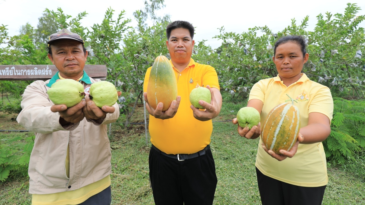 นายปรีชา สารบูรณ์ หมอดินอาสาประจำตำบลก่อเอ้ อ.เขื่องใน จ.อุบลราชธานี กล่าวว่า ปัจจุบันพื้นที่ 12 ไร่ 3 งาน ปรับเปลี่ยนมาปลูกพืชผสมผสาน โดยเริ่มต้นจากการปรับปรุงบำรุงดิน ปลูกปอเทือง เพื่อเป็นพืชปุ๋ยสด ใส่ปุ๋ยหมักจากสารเร่งซุปเปอร์ พด.1 ก่อนการเพาะปลูก ใส่น้ำหมักชีวภาพจากสารเร่งซุปเปอร์ พด.2 ใส่ปูนโดโลไมท์ เพื่อลดความเป็นกรดของดิน พืชที่ตั้งใจปลูกมีความงดงามและผลผลิตน่ารับประทาน เป็นที่ต้องการของตลาด ไม่ว่าจะเป็น ฝรั่ง แก้วมังกร น้อยหน่า แตงไทย มะลิ ดาวเรือง พืชเหล่านี้สร้างรายได้ได้ดีกว่าการปลูกข้าวที่ได้ผลผลิตเพียง 1 ครั้งต่อปีอีกด้วย