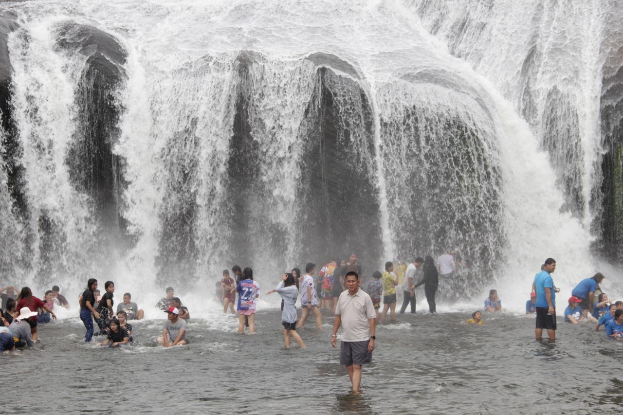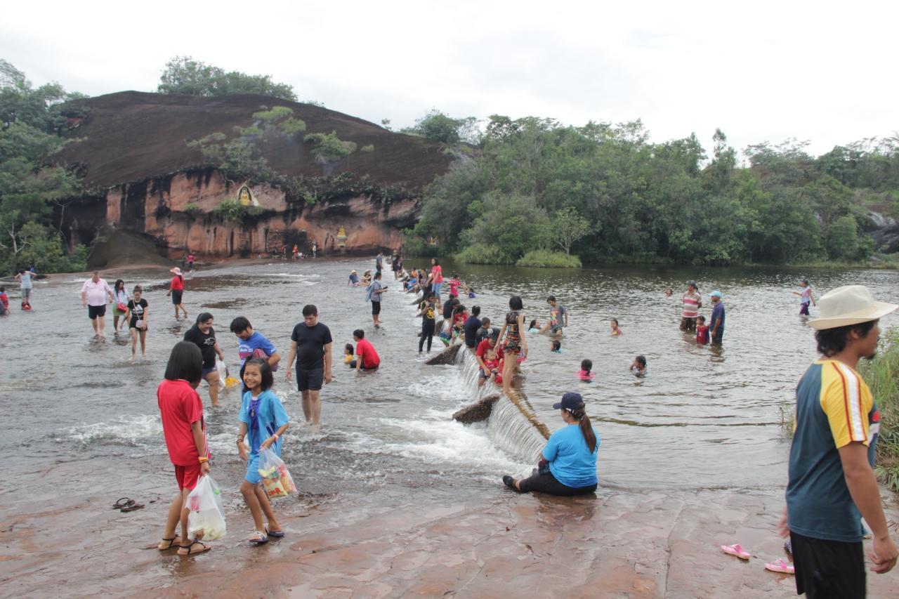 วันหยุดสุดสัปดาห์ นักท่องเที่ยวต่างเดินทางมาเที่ยวชมความงดงามของน้ำตกถ้ำพระ ที่อยู่ในเขตรักษาพันสัตว์ป่าภูวัว โดยต้องนั่งเรือหางยาวขนาดใหญ่เข้าไป โดยตัวน้ำตกสวยงาม มีสไลเดอร์หินให้เล่นน้ำ
