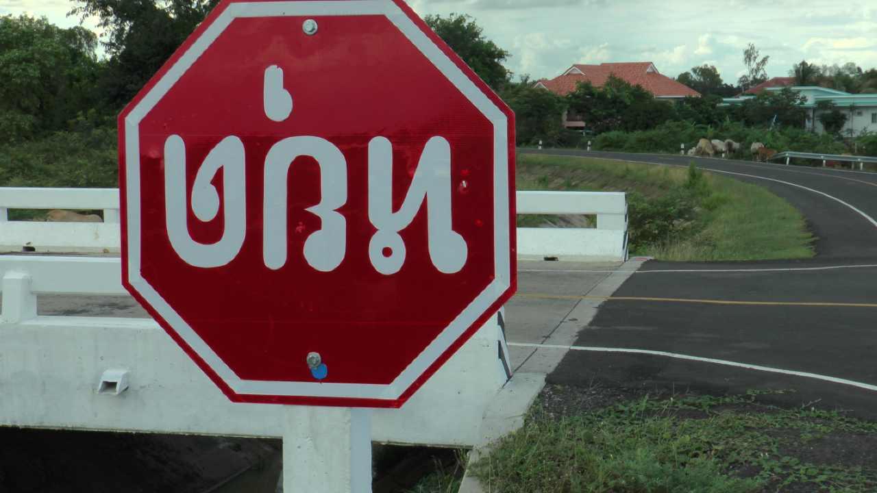 บุรีรัมย์ไปไกลกว่าที่คิด ป้ายเตือนจราจร อ่างเก็บน้ำห้วยจระเข้มาก คำว่า "หยุด" ติดกลับหัว สร้างความงุนงงสงสัย หรือจะให้ใช้กระจกส่องอ่าน วอนทางหลวงชนบทบุรีรัมย์อย่าทำขายขี้หน้า