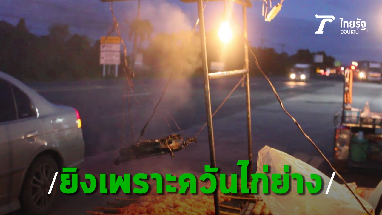 พ่อค้าขายลาบอารมณ์เดือด หลังควันไก่ย่างจากร้านข้างๆ ลอยเข้าร้านจนเหม็น ควงปืนบุกกราดยิงใส่ ทำลูกค้าหนีตายวิ่งกระเจิง ด้านแม่ค้าไก่ย่างคู่กรณีผวาซ้ำ มือปืนได้ประกันตัวมาวนเวียนหน้าร้าน
