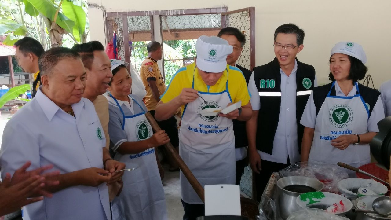 จากนั้นยังได้ประกอบอาหารที่โรงครัวพระราชทาน เพื่อแจกจ่ายให้กับผู้ประสบอุทกภัย โดยเมนูวันนี้คือ ผัดกะเพราหมูสับ และส้มตำ ซึ่งจะแจกจ่ายให้กับผู้ประสบภัยในพื้นที่ตำบลท่าเมืองวันละประมาณ 2,000 กล่อง