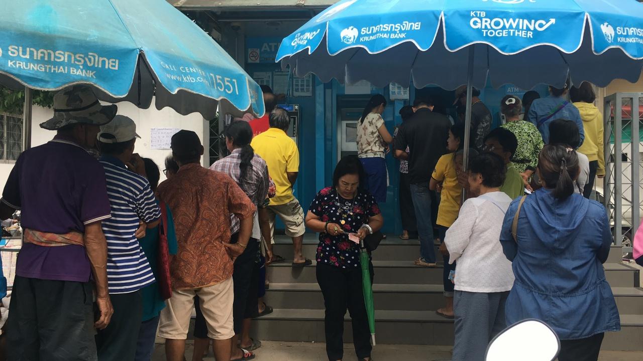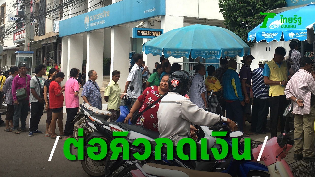 ผู้สูงอายุที่ อ.ปักธงชัย ยืนต่อแถวรอกดเงินจากตู้เอทีเอ็มธ.กรุงไทย ยาวเหยียด เพื่อรับเงิน 500 บาท หลังจากที่ได้ลงทะเบียนรับเบี้ยยังชีพ เพื่อรับเงินผ่านบัตรสวัสดิการแห่งรัฐ เผยพอใจ รัฐบาลช่วย