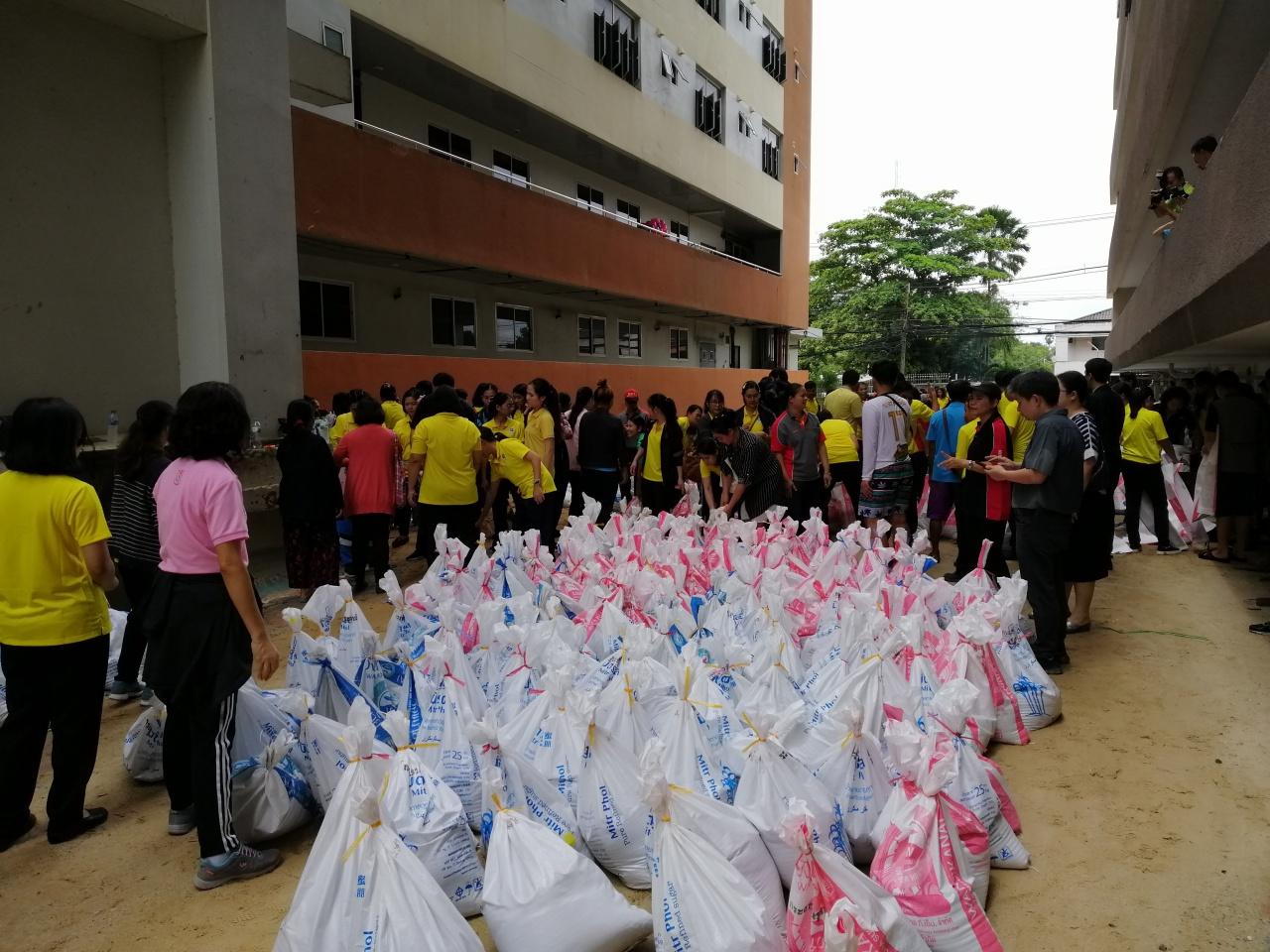 โรงพยาบาลสรรพสิทธิประสงค์ เตรียมขนยาขึ้นที่สูง ย้ายรถออกจากลานจอดชั้นใต้ดิน กรอกกระสอบทรายป้องกันน้ำท่วม พร้อมทำพนังกั้นน้ำไว้รับมือ หลังแม่น้ำมูลขึ้นสูงจนอาจล้นเอ่อเข้าท่วมได้