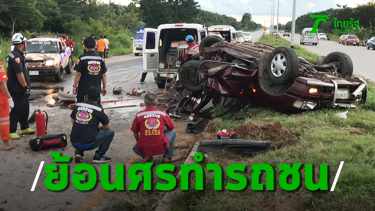 ด้านนายประเสริฐ แสงศรี อายุ 60 ปี พ่อของนายธีระยุทธ์ แสงศรี คนขับรถกระบะสี่ประตูที่ชนท้าย บอกว่า ที่บ้านเป็นอู่ซ่อมรถ ลูกชายกำลังพาลูกค้าไปซื้อแบตเตอรี่รถ 6 ล้อที่นำมาซ่อม ที่ร้านในตัวอำเภอโพนพิสัย ขับตามกันมา เมื่อมาถึงที่เกิดเหตุรถคันหน้าที่จอด และเห็นรถจักรยานยนต์ล้มอยู่บนถนน จึงได้หักหลบจักรยานยนต์ทำให้พุ่งชนท้ายรถคันหน้าอย่างแรง จนรถคันหน้าเสียหลักพลิกคว่ำ ส่วนลูกชายของตนได้รับบาดเจ็บจากสายเข็มขัดนิรภัยที่คาดบริเวณคอและลูกค้าที่นั่งมาด้วยได้รับบาดเจ็บจากเข็มขัดนิรภัยที่คาดบริเวณหน้าอกสำหรับสาเหตุการเกิดอุบัติเหตุจนทำให้มีผู้เสียชีวิตและได้รับบาดเจ็บครั้งนี้ เจ้าหน้าที่จะได้ทำการสอบสวนเพื่อหาสาเหตุที่แท้จริงต่อไป.