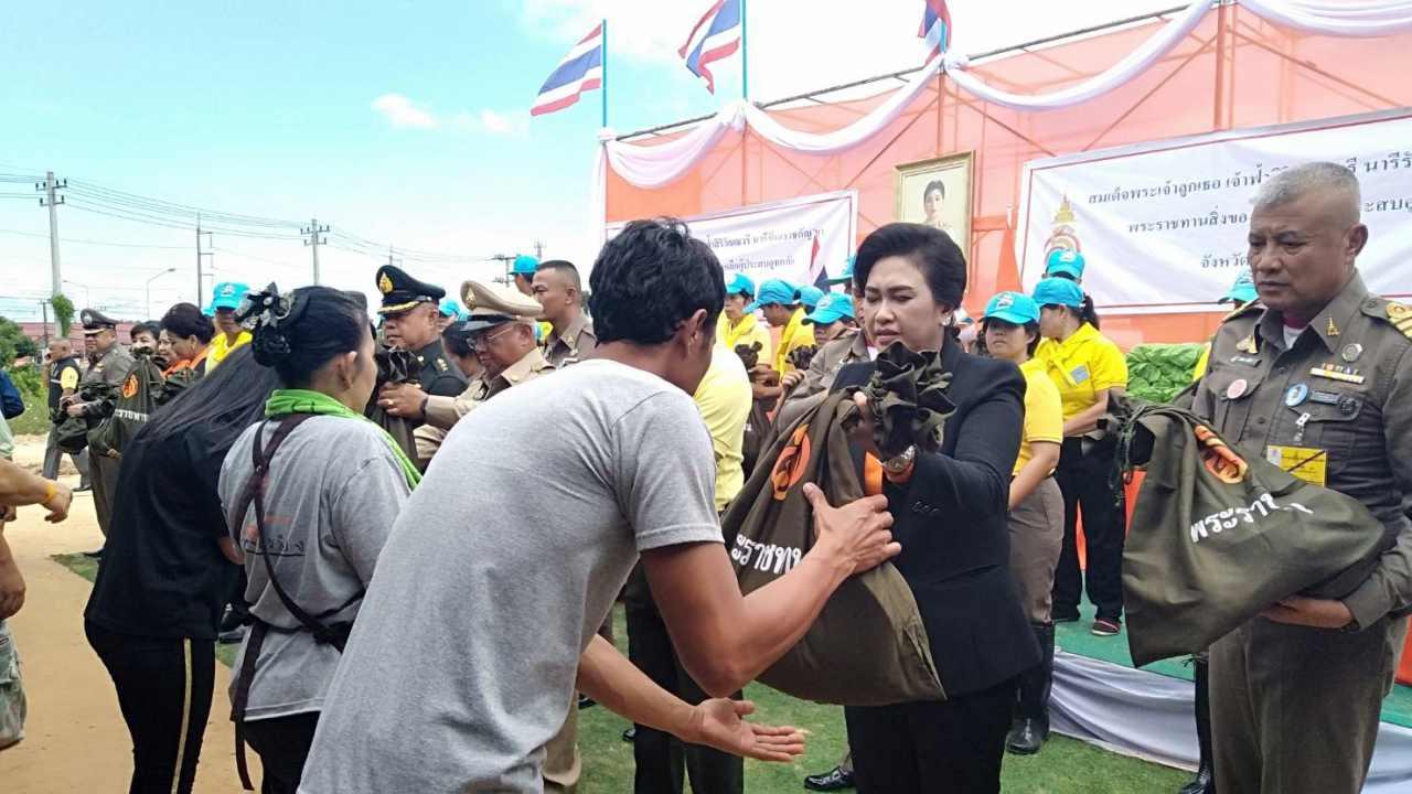 จากนั้นได้เชิญถุงยังชีพพระราชทานเครื่องอุปโภคบริโภค มอบให้กับราษฎรที่ประสบอุทกภัยน้ำท่วมในพื้นที่อำเภอเมืองอุบลราชธานี พร้อมกันนี้ได้มอบอาหารสุนัขและมุ้งกางนอนให้กับผู้ประสบอุทกภัยอีกด้วย