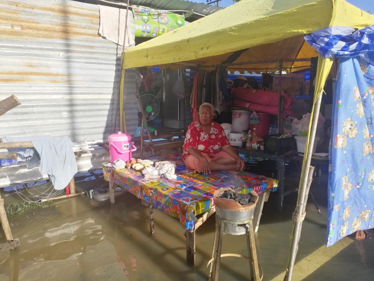 ด้าน นายสุพิศ บุญนาค อายุ 62 ปี ชาวบ้านชุมชนหาดสวนยา กล่าวว่า ตอนนี้น้ำท่วมบ้านมิดหลังคาแล้ว ตนอพยพออกจากบ้านมาตั้งแต่เช้ามืดวันที่ 5 ก.ย.ขนของออกมาแทบไม่ทันเพราะน้ำมูลขึ้นสูงเร็วมาก เกิดมาก็เพิ่งเคยเห็นท่วมขึ้นเกือบเมตรในเวลาไม่กี่ชั่วโมง แต่ก่อนน้ำท่วมขึ้นช้าไม่เกินวันละ 30-50 ซม. ยังพอเก็บของได้ทัน ตอนนี้ต้องมาสร้างเพิงพักอยู่บนเชิงสะพาน 200 ปีรัตนโกสินทร์ ซึ่งเป็นการอพยพหนีน้ำท่วมถึง 2 ครั้ง ความเป็นอยู่ลำบากมาก ตอนกลางวันอากาศร้อนมาก ต้องอาศัยร่มไม้เกาะกลางถนนนั่งพักผ่อนหย่อนใจ กลางคืนถ้าโชคร้าย ฝนตกน้ำรั่วเข้าเพิงพักก็นอนไม่ได้ ส่วนเด็กๆ ในชุมชนที่ย้ายมาอยู่จุดอพยพนี้ด้วยกันก็สนุกกับการเล่นน้ำที่ท่วมคลายร้อนต้องช่วยกันดูไม่ให้เกิดอุบัติเหตุจมน้ำ