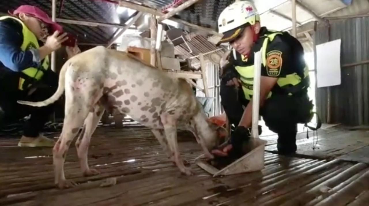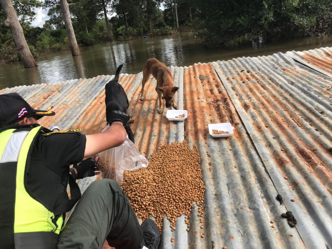 เจ้าหน้าที่กู้ภัยได้นำอาหารเม็ด และแบบกระป๋องพร้อมน้ำสะอาดให้กับสุนัขและแมวทุกตัว ได้กินไม่ให้อดอาหาร เพราะอาจจะทำให้เจ็บป่วยได้ พร้อมทั้งตรวจสุขภาพแต่ละตัวว่ายังมีสุขภาพแข็งแรงหรือไม่ โดยหากพบตัวไหนมีอาการเจ็บป่วย ก็จะแจ้งให้ทีมสัตวแพทย์ในพื้นที่ได้ทราบ และจะเข้ามาตรวจสุขภาพ และหาแนวทางการรักษา