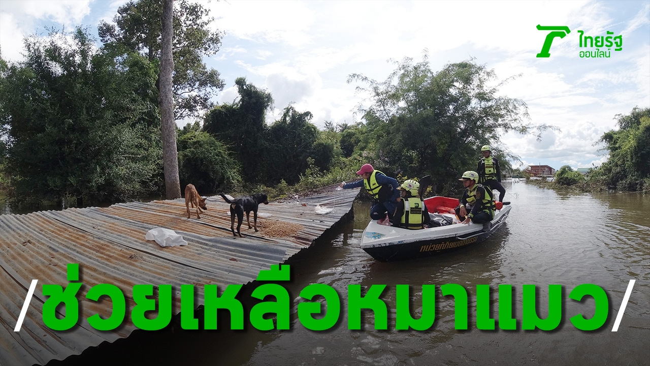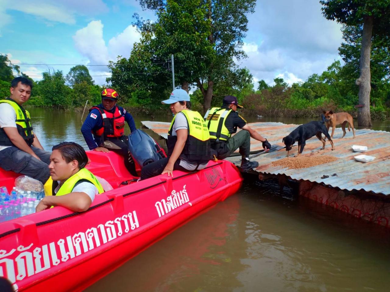 กู้ภัยกาฬสินธุ์ นำอาหารและน้ำไปแจกจ่าย ช่วยเหลือสุนัขและแมว ที่ติดบนหลังคาจากน้ำท่วมที่อุบลราชธานี พร้อมตรวจสุขภาพ และวางแผนหาทางรักษา ชี้ทุกชีวิตมีความสำคัญต้องช่วยเหลือ