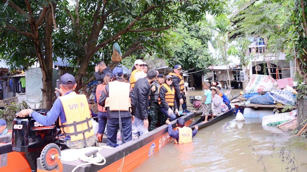 "ธรรมนัส-มนัญญา" ลงพื้นที่ อ.วารินชำราบ จ.อุบลราชธานี ตรวจเยี่ยมน้ำท่วม พร้อมให้กำลังใจ ก่อนลงเรือท้องแบนลุยมอบถุงยังชีพ ช่วยเหลือประชาชนประสบอุทกภัย