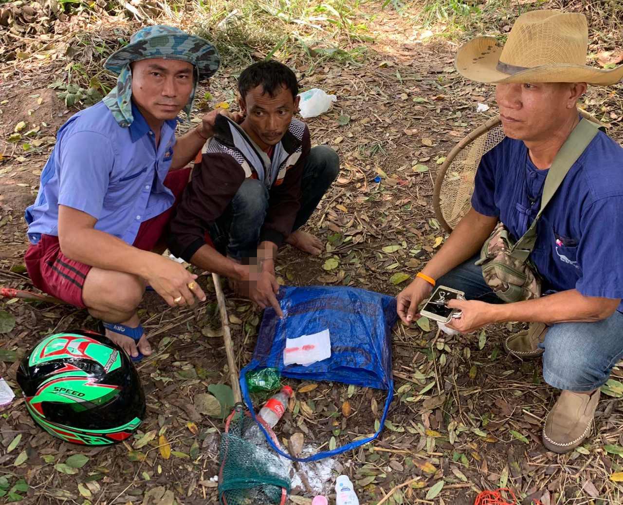 "เจ้าหน้าที่ตำรวจชุดสืบสวน สภ.เวฬุวัน จึงได้วางแผนปลอมตัวเป็นชาวบ้านไปตกปลาที่สระดังกล่าว กรระทั่งนายหลงขับขี่รถจักรยานยนต์มาจอดที่ริมสระ เจ้าหน้าที่ตำรวจที่ปลอมตัวเป็นคนหาปลาได้แสดงตัวขอตรวจค้นทันทีและควบคุมตัวไว้ พบยาบ้าจำนวน 40 เม็ดอยู่ในกระเป๋ากางเกงด้านหน้าข้างขวา พร้อมโทรศัพท์มือถือ 1 เครื่อง ตรวจปัสสาวะพบฉี่ม่วง