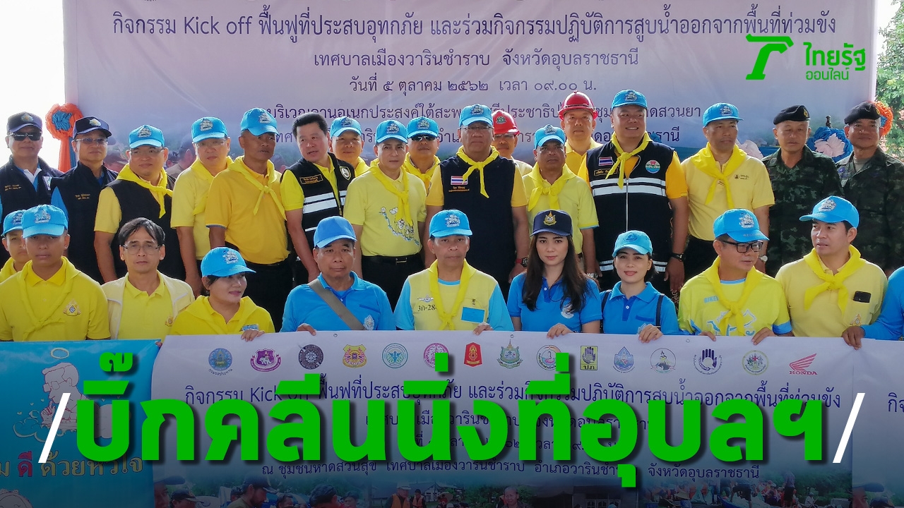 ชาวอุบลราชธานี พร้อมทั้ง จนท.ทหาร ตำรวจ ข้าราชการ และเอกชน ร่วมเปิดกิจกรรม Kick off ลงพื้นที่ช่วยเหลือทำความสะอาด ฟื้นฟู เยียวยา ผู้ประสบอุทกภัย ในพื้นที่ อ.วารินชำราบ เพื่อให้คืนสู่สภาพปกติ