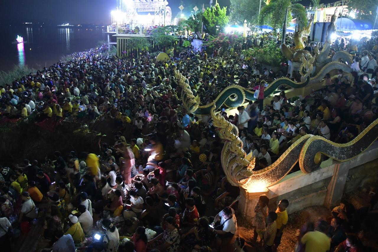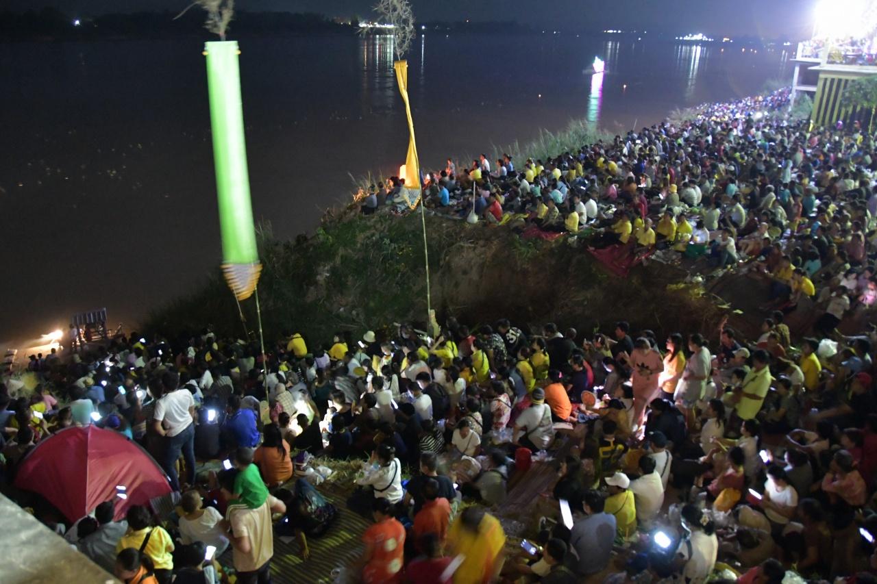 เมื่อวันที่ 13 ต.ค.62 บรรยากาศการชมปรากฏการณ์บั้งไฟพญานาค ที่จังหวัดหนองคาย คึกคักตลอดทั้งวัน นักท่องเที่ยวมุ่งหน้าเข้าพื้นที่ริมฝั่งแม่น้ำโขง อ.โพนพิสัย และ อ.รัตนวาปี จ.หนองคาย เพื่อรอชมปรากฏการณ์บั้งไฟพญานาค จนกระทั่งเวลา 18.27 น. บั้งไฟพญานาคลูกแรกก็ผุดขึ้นกลางแม่น้ำโขง ที่บ้านท่าม่วง ต.รัตนวาปี อ.รัตนวาปี จำนวน 5 ลูก หลังจากนั้นก็มีบั้งไฟพญานาคเกิดขึ้นต่อเนื่องกัน