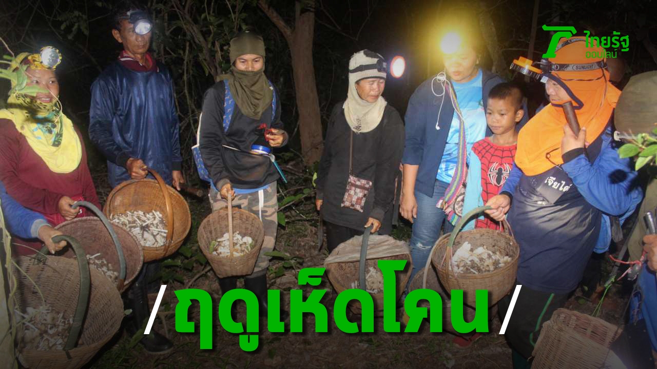 ชาวบ้านนับร้อย ที่อ.ครบุรี โคราช แห่ส่องไฟหาเห็ดโคน "ป่าตลิ่งชัน" พบปีนี้ออกชุกเต็มผืนป่า เหตุฝนมาช้า เผยเคล็ดลับ ส่องไฟหาตอนกลางคืน สร้างรายได้หลักพันบาทต่อวัน