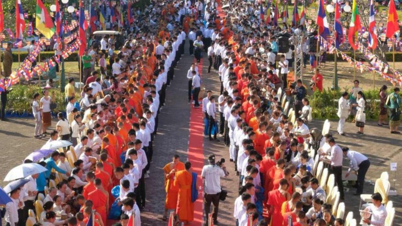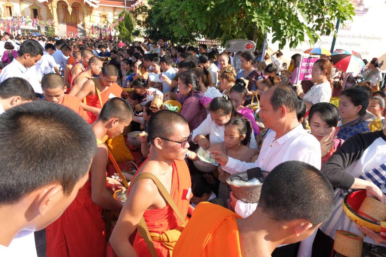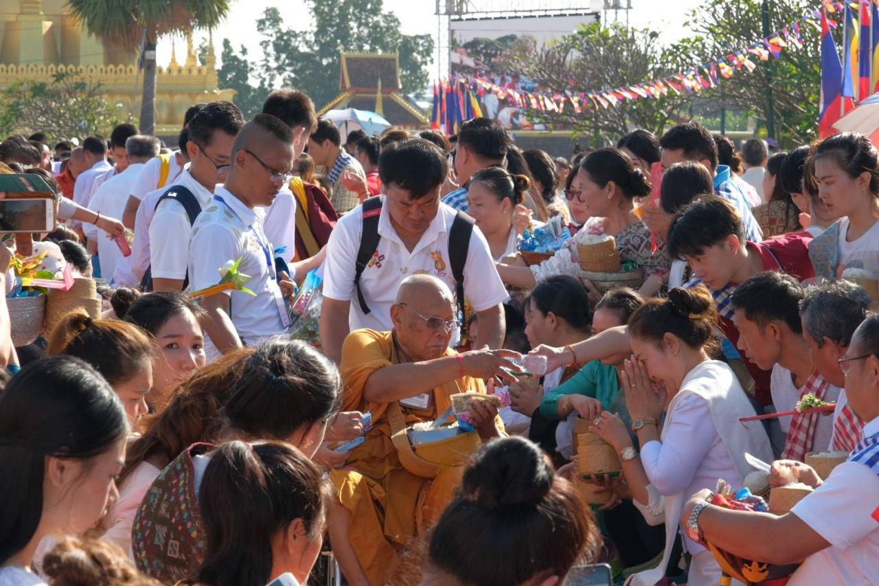 ชาวพุทธสปป.ลาว เกือบ 3 หมื่นคนสร้างปรากฏการณ์ให้ประวัติศาสตร์ต้องบันทึกไว้กลางนครหลวงเวียงจันทน์ แต่งชุดพื้นเมืองสุดงดงาม ตักบาตรพระสงฆ์ 5 แผ่นดินกว่า 400 รูป ล้นวัดพระธาตุหลวง