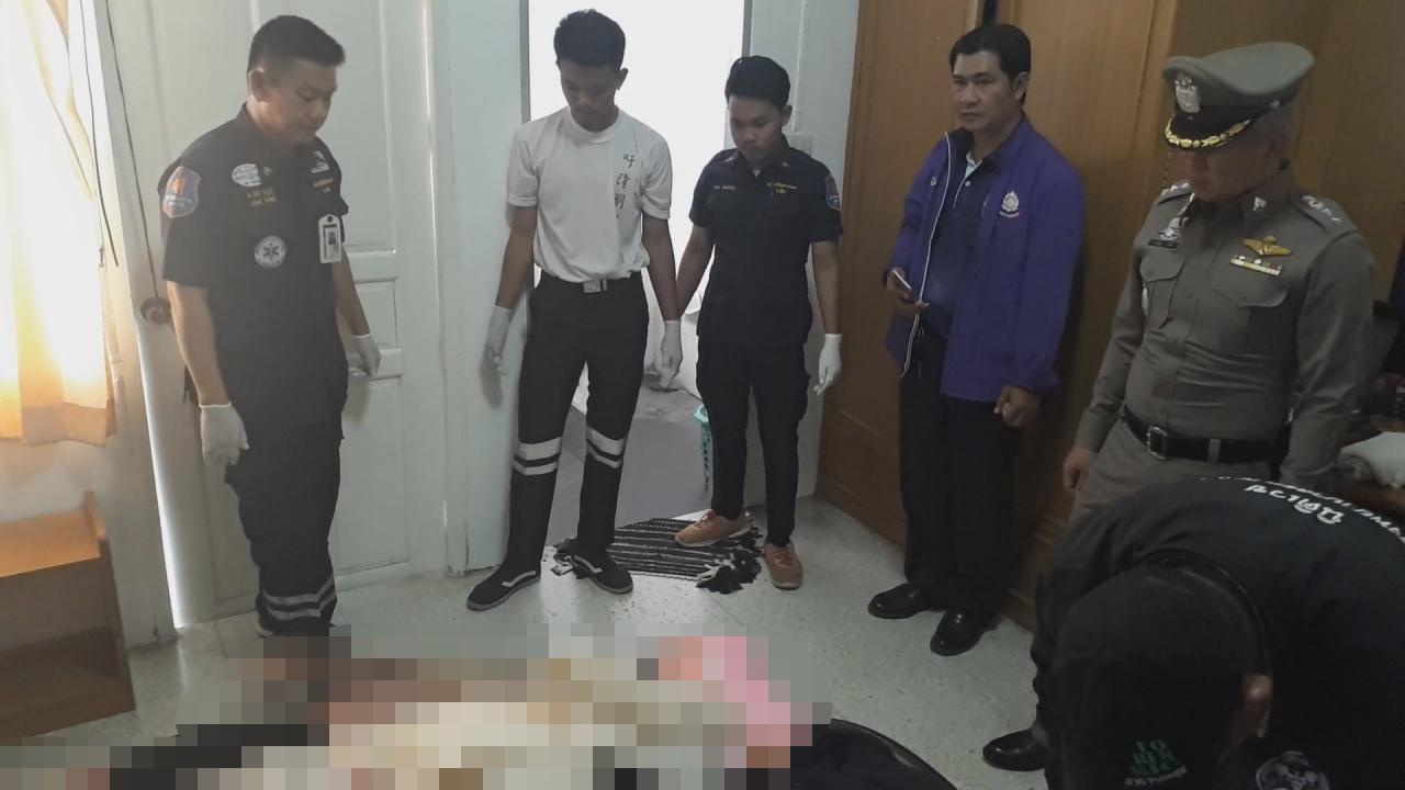 ที่เกิดเหตุพบ นายปิยพรรณ ช่างพิมพ์ อายุ 28 ปี ชาว ต.ไชยวาน อ.ไชยวาน จ.อุดรธานี หลานชายผู้ตาย นำตรวจสอบสภาพศพ นายธวัชชัย ช่างพิมพ์ อายุ 37 ปี ชาวบ้าน ม.8 ต.ไชยวาน อ.ไชยวาน จ.อุดรธานี ใช้สายไฟจากปลั๊กไฟฟ้า ผูกคอโยงกับราวผ้าม่านหน้าต่างบานเกร็ด โยงตัวปลั๊กไฟฟ้าลงมาพันเข้ากับลูกปิดของประตูหลังห้องพัก สภาพศพสวมกางเกงขาสั้นตัวเดียว ข้างศพพบชั้นวางของที่ผู้ตายใช้ปีนขึ้นไปผูกคอตาย ตรวจสอบตามร่างกายและรอบบริเวณ ไม่มีร่องรอยการต่อสู้และถูกทำร้าย เสียชีวิตจากการผูกคอตัวเองมาราว 6-7 ชั่วโมง ทางญาติไม่ติดใจ แต่ตำรวจได้นำศพไปชันสูตรให้ละเอียดอีกครั้งที่ รพ.ศูนย์อุดรธานี ก่อนมอบศพให้ญาติไปบำเพ็ญกุศลตามประเพณี