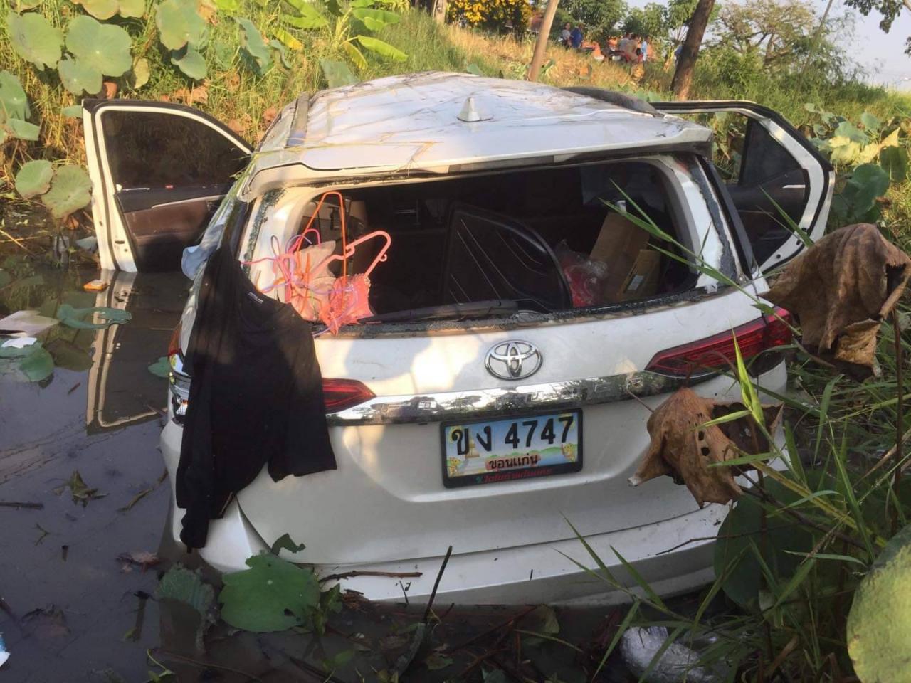 "ใบปอ รัตติยา"พร้อมคณะซิ่งฟอร์จูนเนอร์เตรียมไปเปิดคอนเสิร์ต เกิดประสบอุบัติเหตุชนจยย.ที่ขี่ออกมาตัดหน้าเพื่อจะข้ามไปยังถนนอีกฟาก ทำให้เบรกไม่ทันพุ่งชนเต็มแรง รถเสียหลักพลิกคว่ำหลายตลบตกคลองน้ำริมถนน คนขี่ จยย.ดับ คณะนักร้องดังบาดเจ็บ 3 ราย