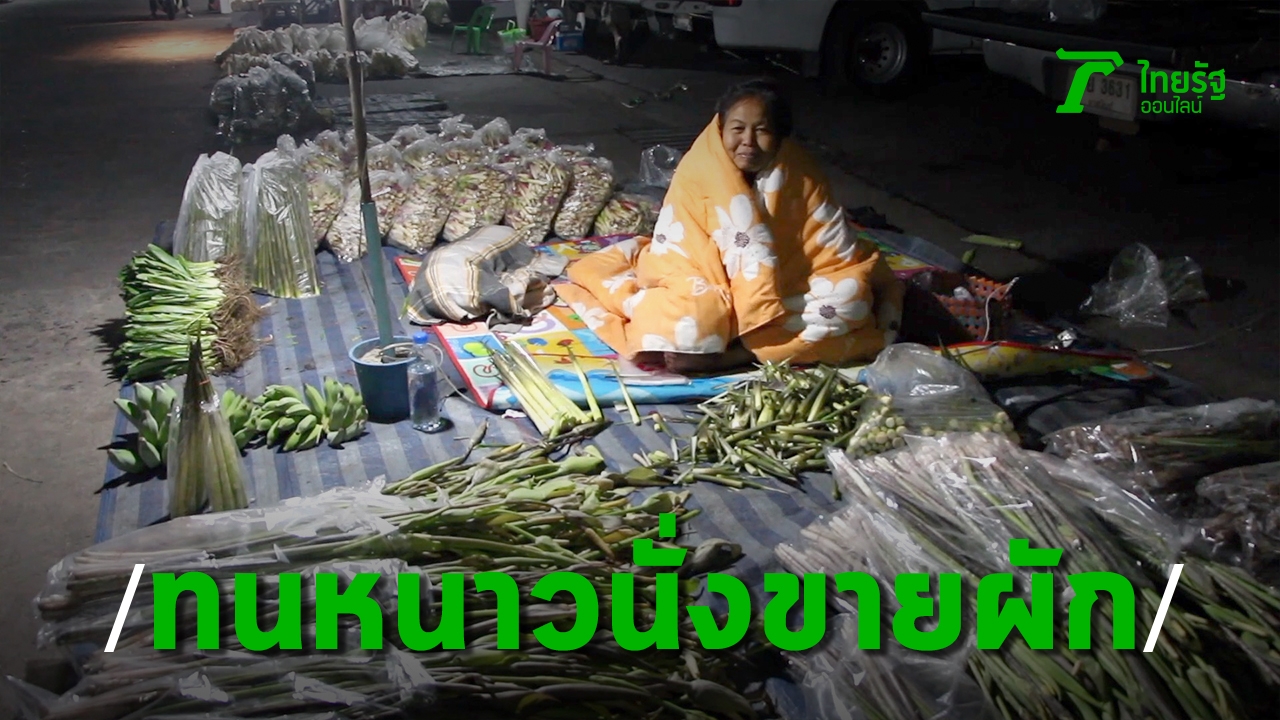 กาฬสินธุ์หนาวจับใจ แม่ค้าตลาดสดที่ขายผักโต้รุ่ง ต้องนั่งห่มผ้าขายรอบดึก หลังเผชิญกับสภาพอากาศที่หนาวจัดในช่วงกลางดึกไปจนถึงรุ่งเช้า