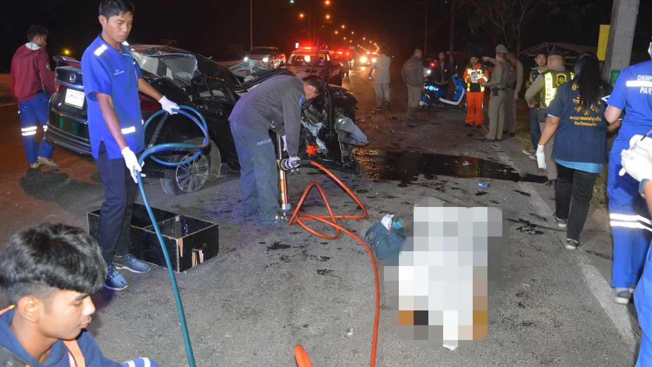 เวลา 05.00 น. วันที่ 29 ธ.ค. ร.ต.อ.ภูมินทร์ เอี่ยมอ่อง รองสว.สอบสวน สภ.ชุมแพ จ.ขอนแก่น รับแจ้งเหตุรถชนกันที่ถนนมลิวรรณ (ชุมแพ-โนนหัน) บ้านเหมือดแอ่ หมู่ 9 ต.โนนสะอาด มีผู้เสียชีวิตติดคาซากรถ จึงพร้อมด้วยแพทย์เวร รพ.ชุมแพ จนท.กู้ภัยเต็กก่า จีแชเกาะ รุดไปตรวจสอบ