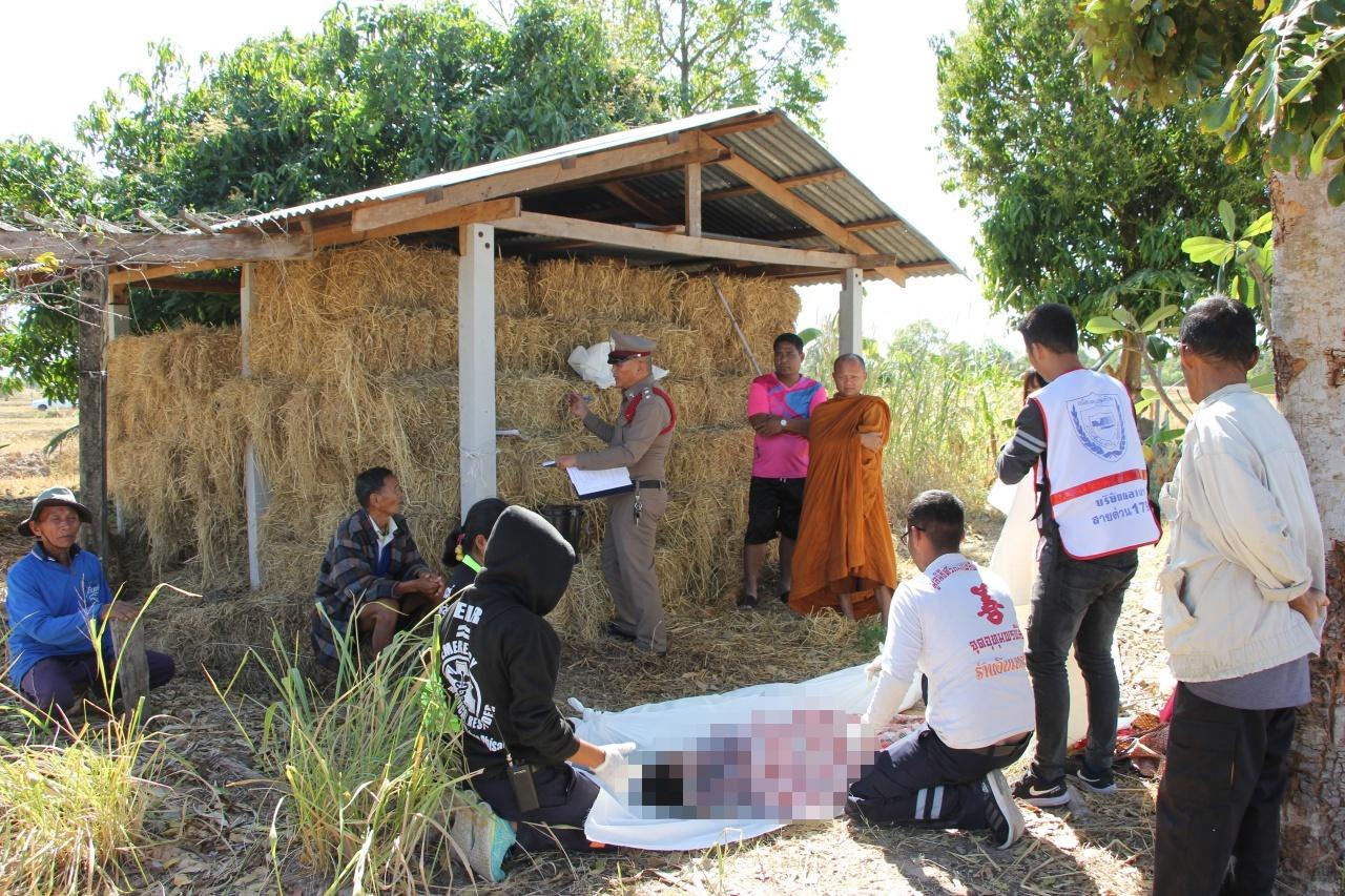 นายคำภา บุตรดี อายุ 73 ปี ชาวบ้าน หมู่ 3 บ้านหนองโน ต.เสียว พ่อของนางบุญเกิดผู้ตาย เล่าว่า ทั้งสองคนไปทำงานก่อสร้างที่ชลบุรี มีลูกและหลานด้วยกันจนโตแล้ว ก่อนวันเกิดเหตุทั้งสองคนโทรมาหาบอกทำงานที่นี่ก็ไม่มีเงิน บอกจะลาออกแล้วกลับไปอยู่บ้าน ตอนกลับมาเงินค่ารถก็ไม่มีต้องให้ทางบ้านโอนเงินเป็นค่ารถโดยสารส่งไปให้ พอญาติไปรับที่ท่ารถโดยสาร กลับมาถึงบ้านก็พักผ่อนกินข้าวกันอยู่คืนหนึ่ง ยังไม่ทันได้ถามไถ่สารทุกข์สุกดิบ เช้ามาทั้งสองผัวเมียก็ออกไปที่ทุ่งนาโดยไม่บอกใครว่าไปทำอะไร ตนเห็นไปนานผิดสังเกตจึงให้หลานสาววิ่งไปตามให้มากินข้าว จนพบเป็นศพผูกคอเสียชีวิตแล้ว ซึ่งหลานเห็นแล้วก็ตกใจจึงวิ่งมาบอกตนออกไปดู ซึ่งยังไม่ทราบว่าสาเหตุการผูกคอตายคู่กันครั้งนี้มาจากสาเหตุอะไร