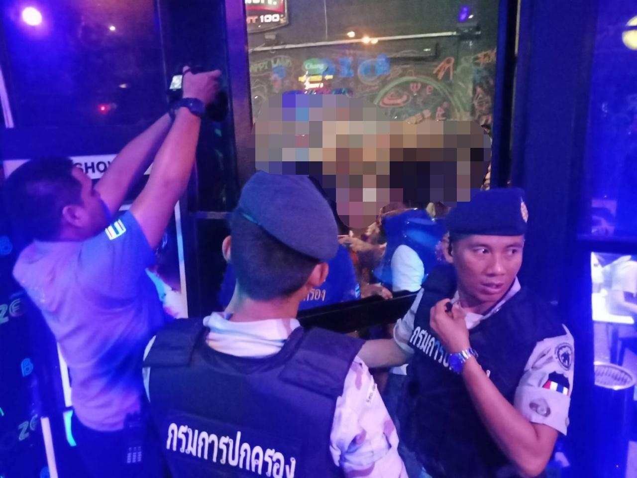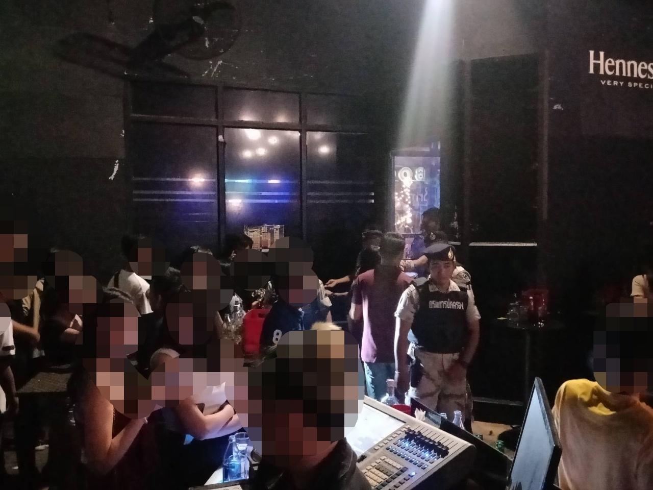 ส่วนร้านโดรนคลับ พบนักเที่ยว จำนวนกว่า 200 คน เป็นเยาวชนอายุต่ำกว่า 20 ปีเข้าใช้บริการ จำนวน 78 คน จึงดำเนินการทำบันทึกและแจ้งผู้ปกครองมารับตัวกลับบ้าน นอกจากนี้ตรวจพบนักเที่ยวไม่พกบัตรประจำตัวประชาชน จำนวน 19 คน จึงนำส่งพนักงานสอบสวนดำเนินคดีและเปรียบเทียบปรับตามกฎหมายต่อไป โดยร้านโดรนคลับ มีนางสาวอรทัย ภักดีสมัย อายุ 31 ปี แสดงตัวเป็นผู้ดูแลร้าน มีนางสาวรักษยา แสงฤทธิ์ เป็นผู้รับใบอนุญาตให้ตั้งสถานบริการ จึงได้จับกุมตัวและร้องทุกข์กล่าวโทษใน 4 ฐานความผิด
