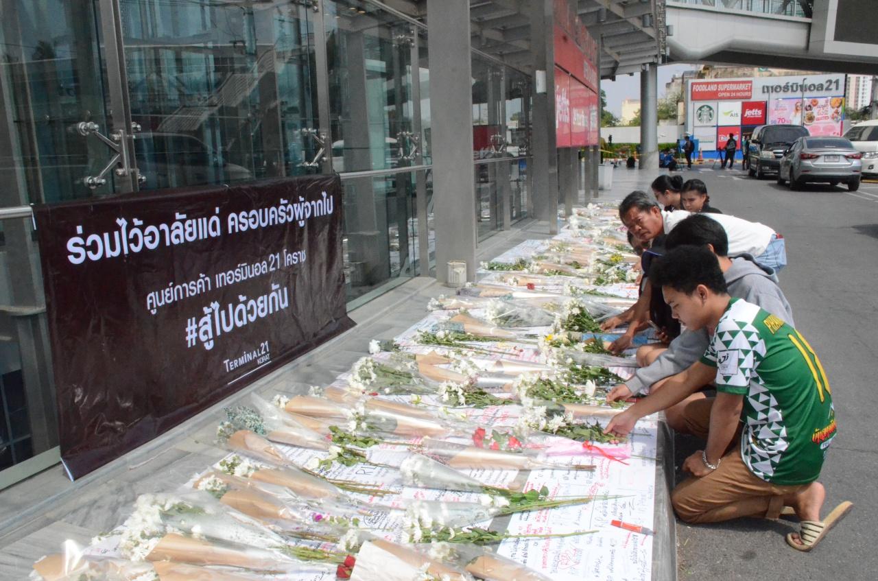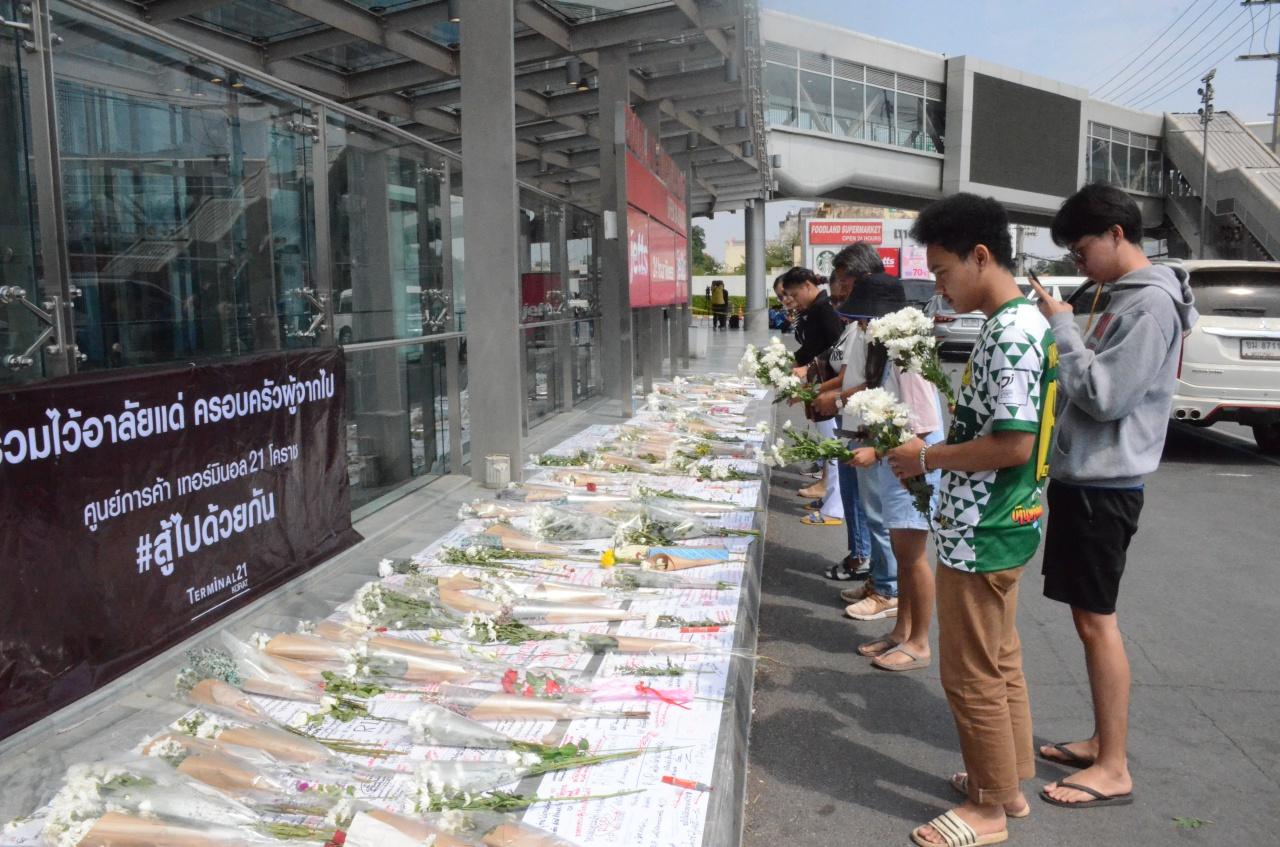 นครราชสีมา วันนี้ (10 ก.พ.63) ที่ บริเวณหน้าศูนย์การค้าเทอร์มินอล 21 นครราชสีมา อ.เมือง จ.นครราชสีมา นายวิเชียร จันทรโณทัย ผู้ว่าราชการจังหวัดนครราชสีมา ได้ร่วมยืนสงบนิ่งเพื่อเป็นการไว้อาลัยให้กับผู้เสียชีวิตจากเหตุกราดยิงภายในศูนย์การค้าฯ และรับมอบเงินบริจาคจากภาคส่วนต่างๆ โดยเงินทั้งหมดจะสมทบเป็นกองทุนช่วยเหลือเหยื่อ โดยล่าสุดมอบให้กับเจ้าหน้าที่ตำรวจที่เสียชีวิตในเหตุการณ์นี้