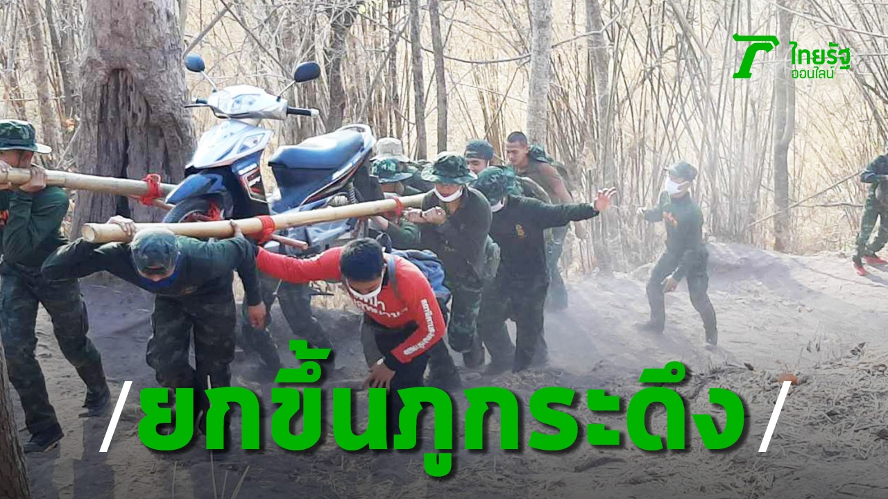 ทหาร มทบ.28 ขอทำหน้าที่ลูกหาบแบกรถจยย.2 คันขึ้นภูกระดึง ใช้ในภารกิจดับไฟป่า ส่วน ฮ.ที่ขอมายกรถไถยังไม่มา หัวหน้าอุทยานฯ เผย พื้นที่ป่าถูกไฟไหม้รวม 3.4 พันไร่ ดับหมดแล้ว แต่อาจปะทุได้ทุกเมื่อเนื่องจากอากาศร้อน ลมแรง